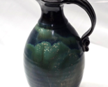 - Vintage Teal Swirl Mottled Pottery 10” Beer Water Pitcher Jug - Unknown Maker