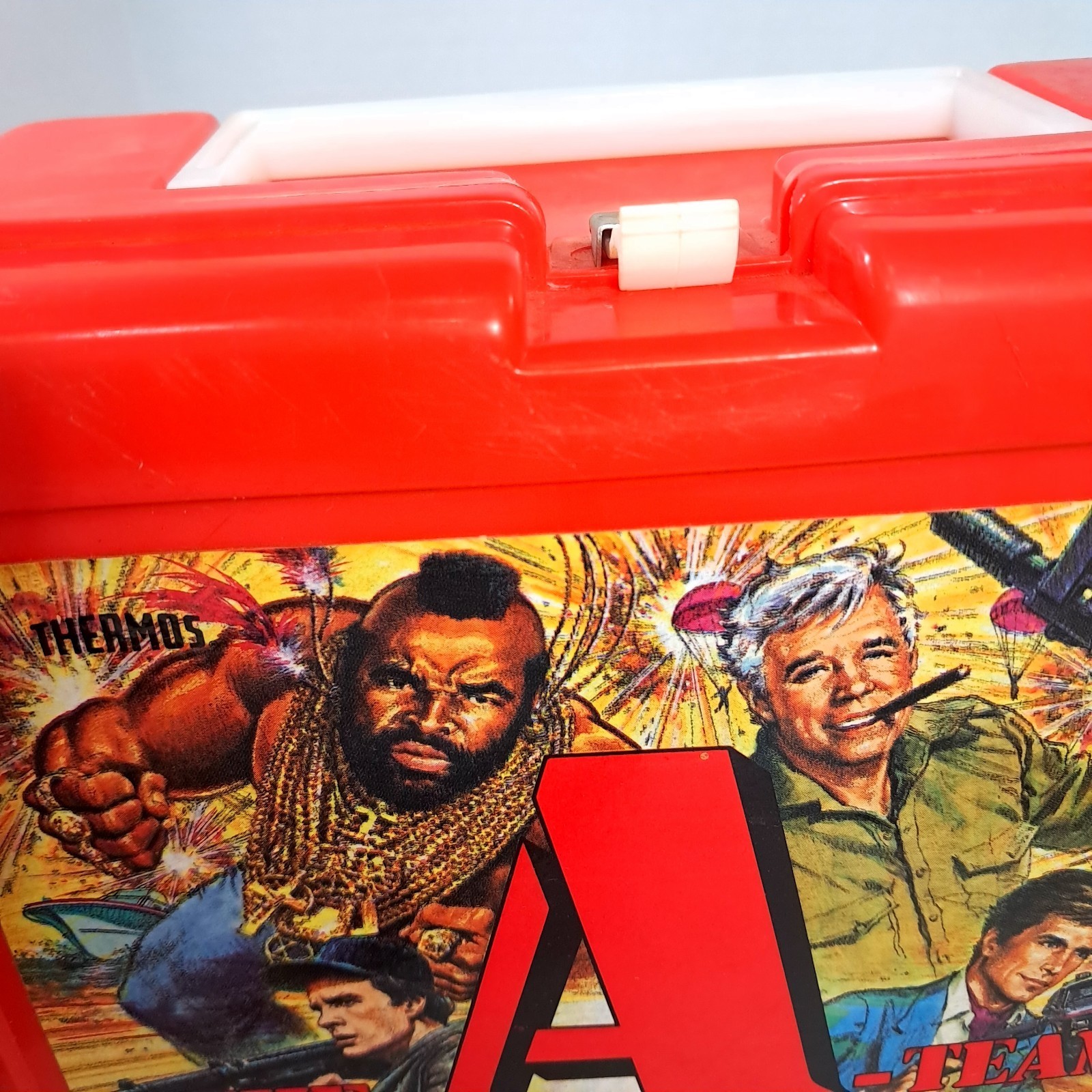 - Vintage The A-TEAM Plastic Red Lunch Box 1983 Thermos Brand ateam Mr. T tv show