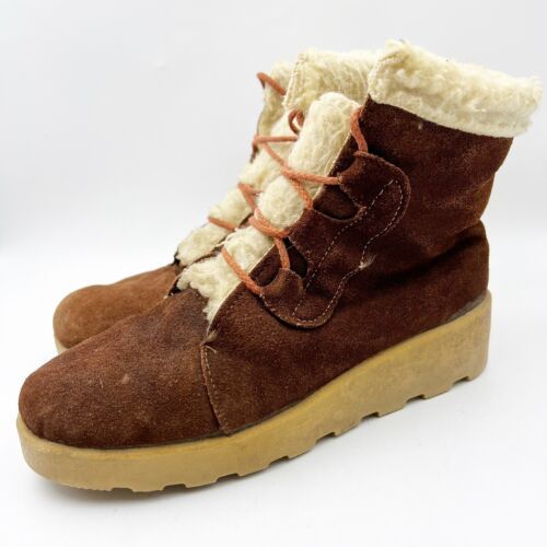 Vintage Thom Mcan Suede Leather Boots Size 8 Ankle Sherpa Lined Wedge