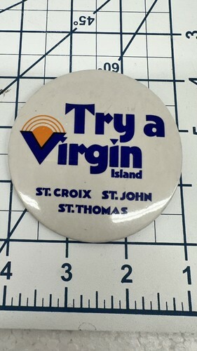 This vintage pinback button features the Virgin Island brand and is a great addition to any collection. The white color and advertising theme make it a unique piece for St. Croix, St. John, or St. Thomas enthusiasts. The item has not been modified and is not handmade.