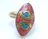 - Vintage Tuareg Brass Turquoise Inlay Ring – Handmade Boho Statement Jewelry
