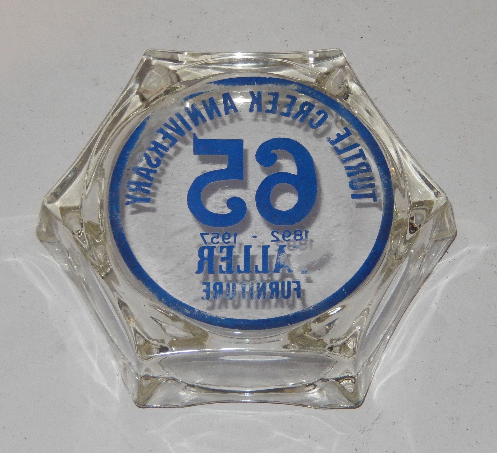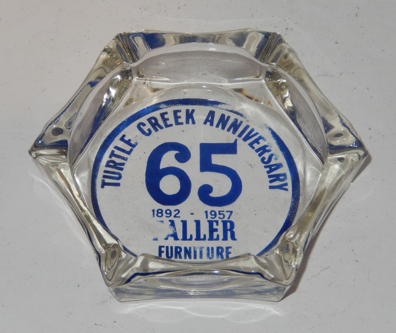 - Vintage Turtle Creek 65th Anniversary Faller Furniture 1892-1957 Glass Ashtry