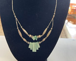 - Vintage Two Stand Necklace Silver Tone with Jade Bars