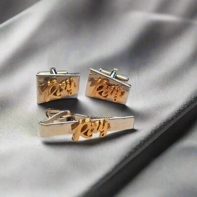 Vintage Two-Tone "Ray" Cufflinks and Tie Clip Set – Personalized Men’s Jewelry