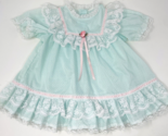 Vintage USA Made Girls Smocked Baby Girl Dress 18 Months Teal Blue Lace Ruffles