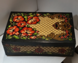 - Vintage Ukrainian hand painted wooden box 1980's. L 7-3/4" X W 5-1/8" X H 2-1/2.