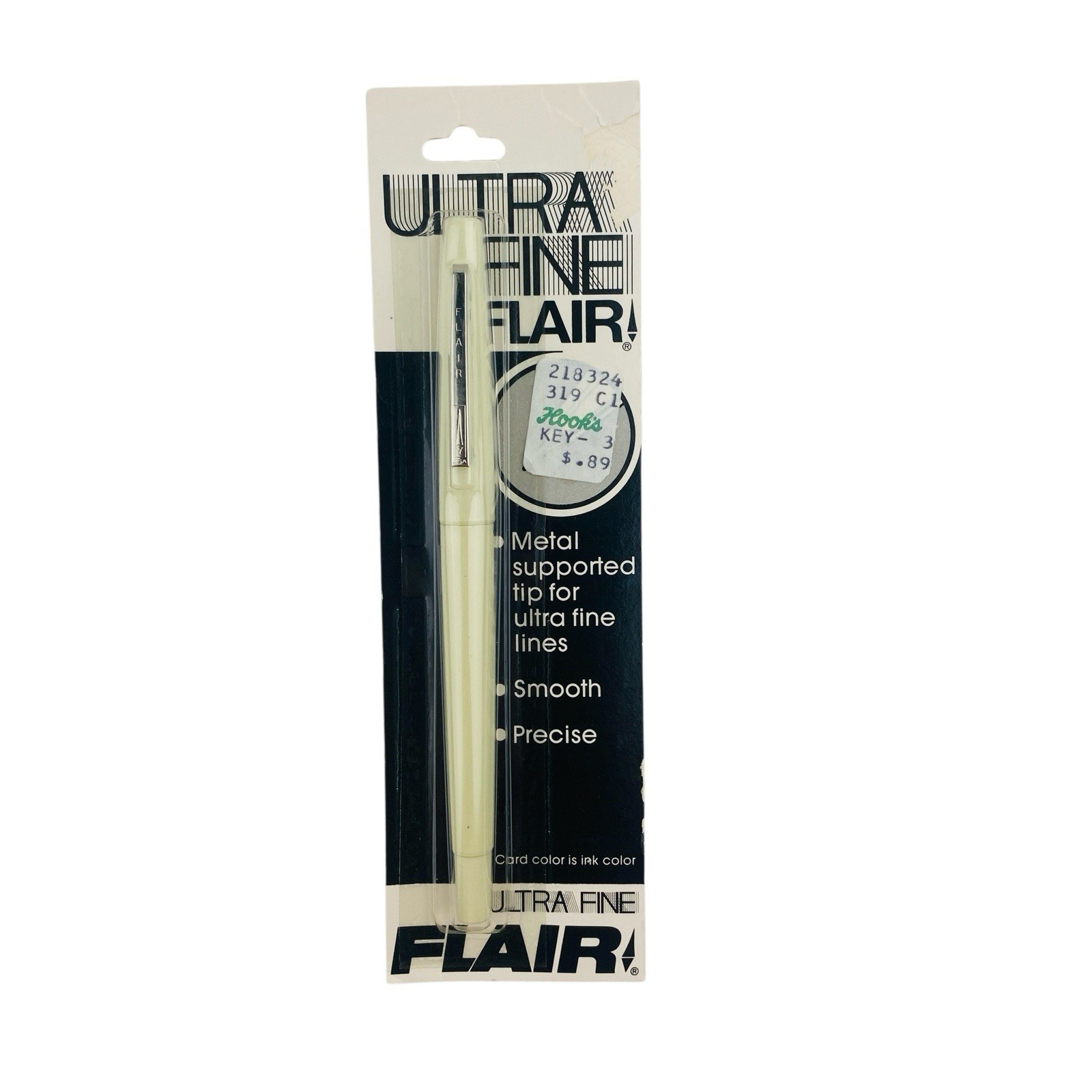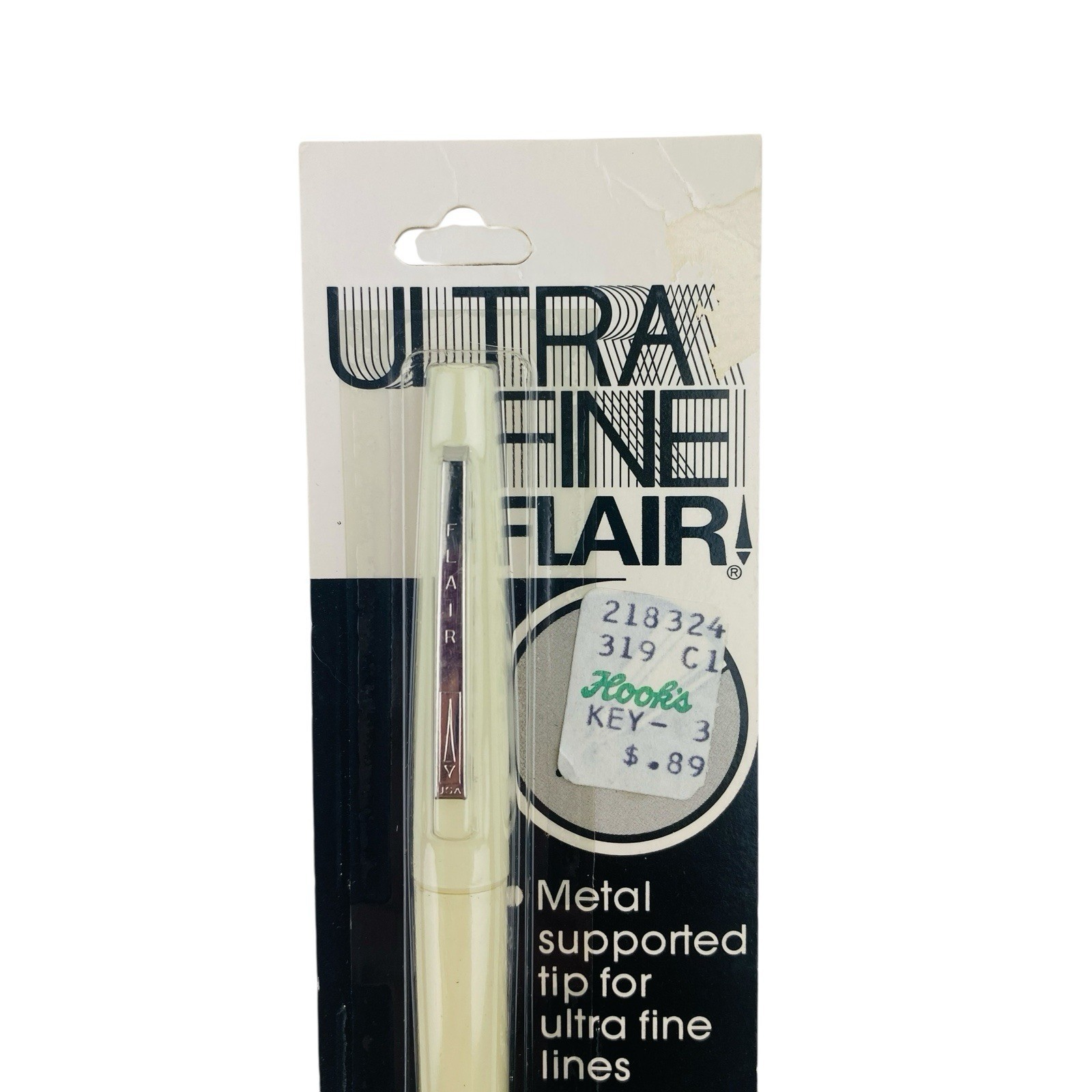 Set of two new-old-stock and sealed vintage Ultra Fine Flair Pens ? one with black ink, one with red ink. Sealed in original packaging with original price tags from now-defunct Indianapolis-based Hooks Drug Store. Made in USA by Gillette. From a smoke-free home. Ships next day!