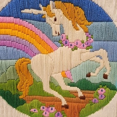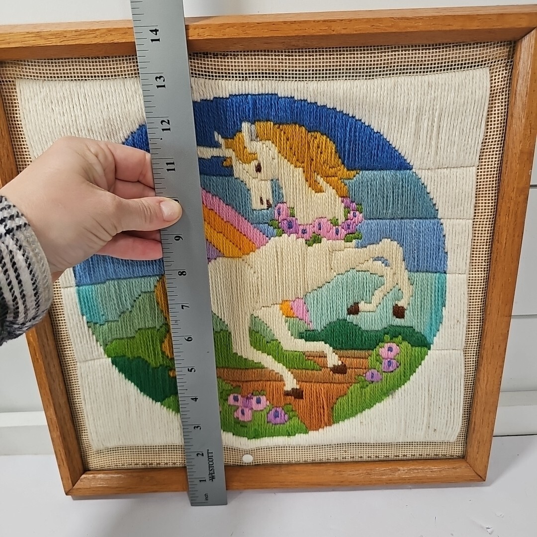 - Vintage Unicorn Rainbow Crewel Art Boho Kitsch Fantasy Magical Art Framed