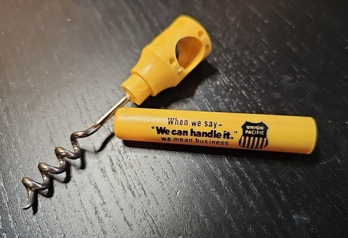 - Vintage Union Pacific Railroad Advertising Corkscrew Wine Bottle Opener Yellow
