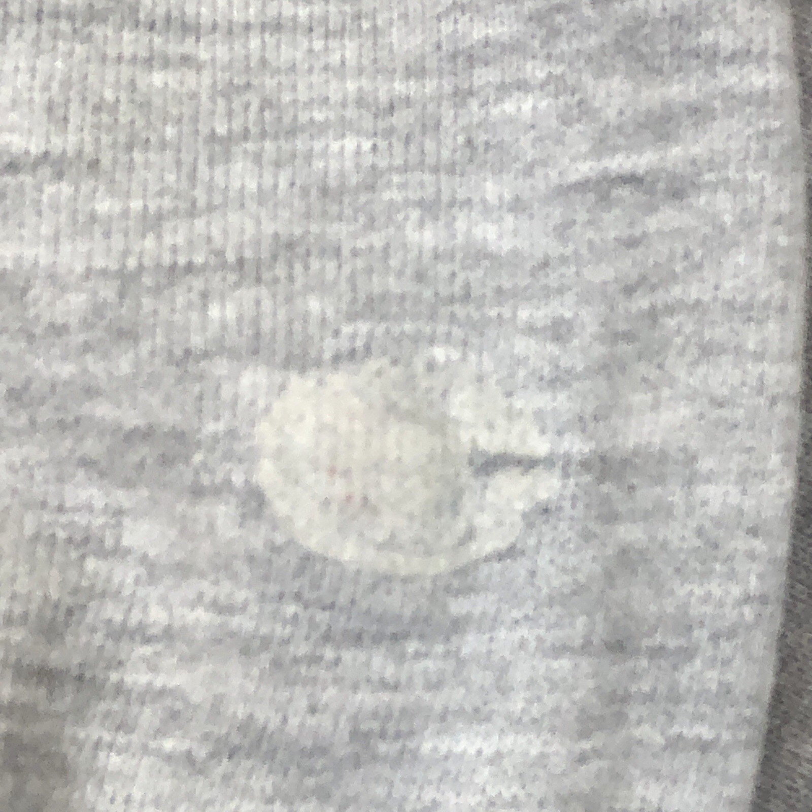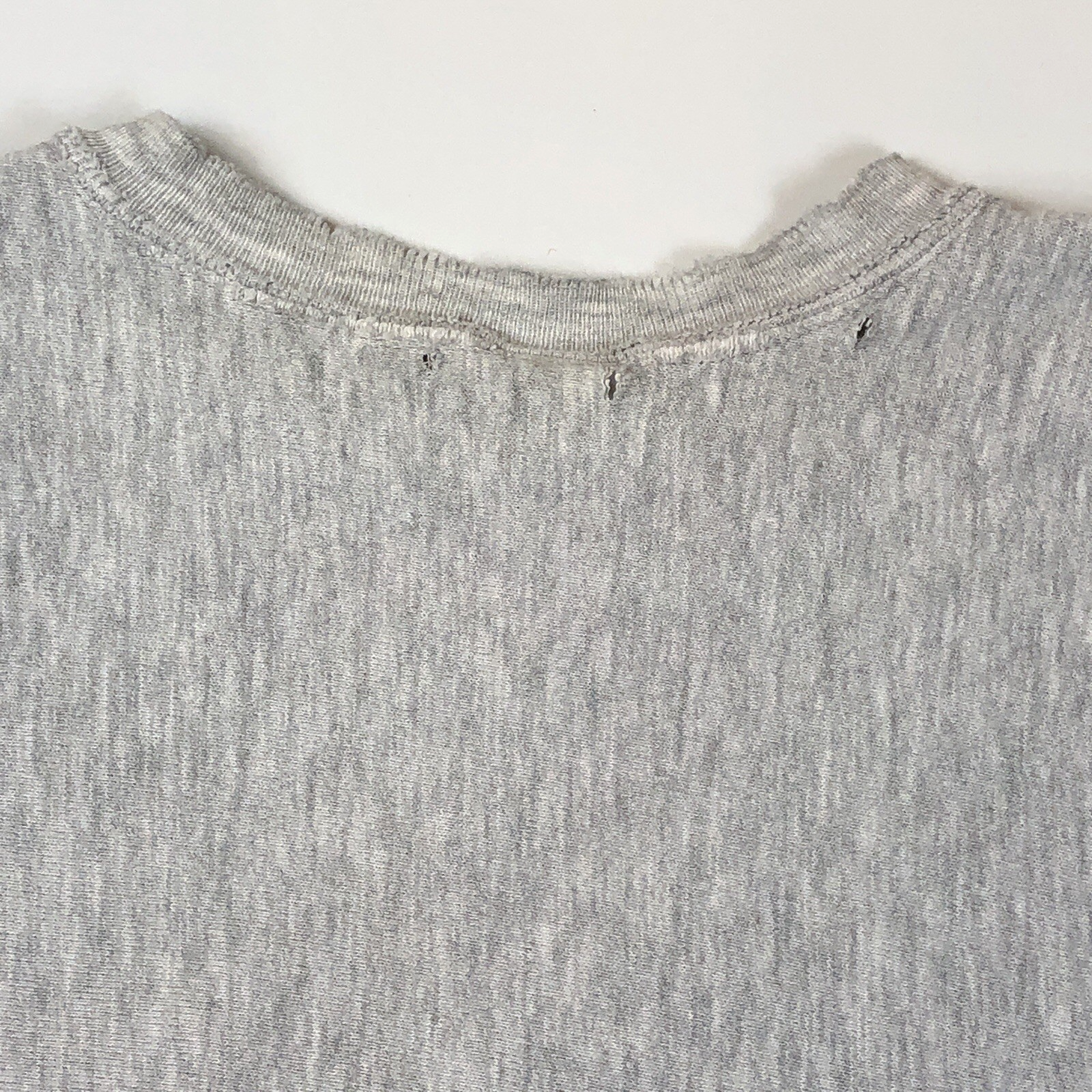 Sweatshirt is disressted with wear around embroidered front, neck and cuffs. See all photos