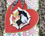 Vintage Valentines Day Card Girl Kissing Dove A Love Bird Seeks Its Mate