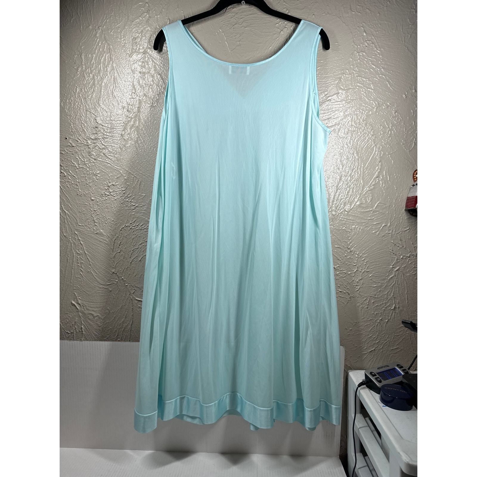 Vintage Vanity Fair Blue Night Gown Slip Silky Chemise USA Made Womens Size L
