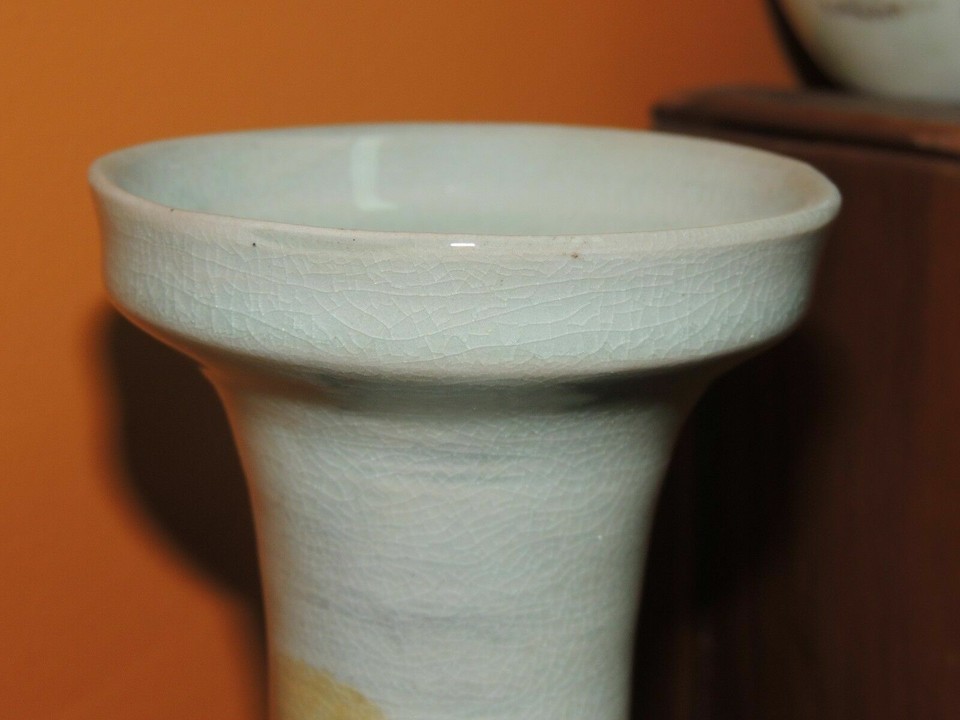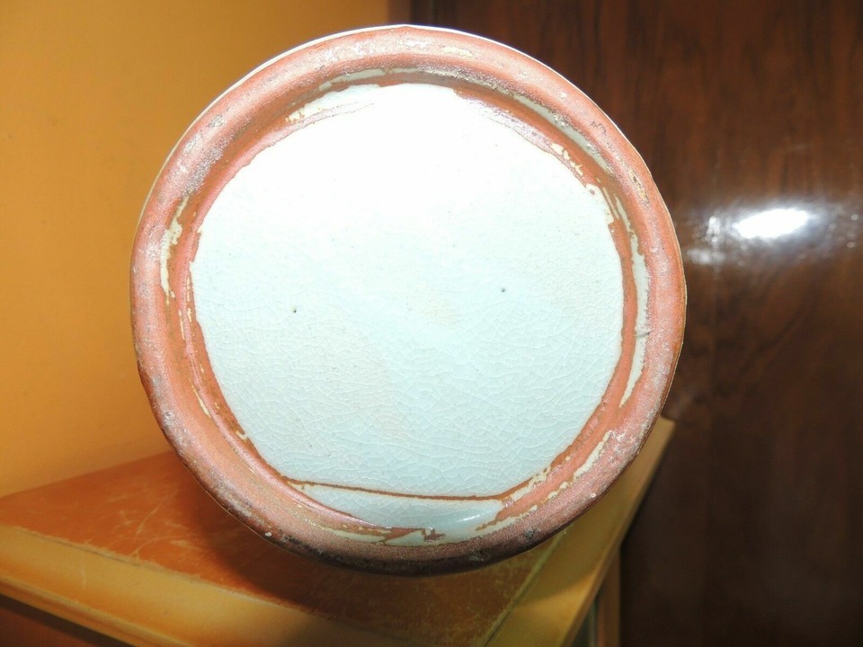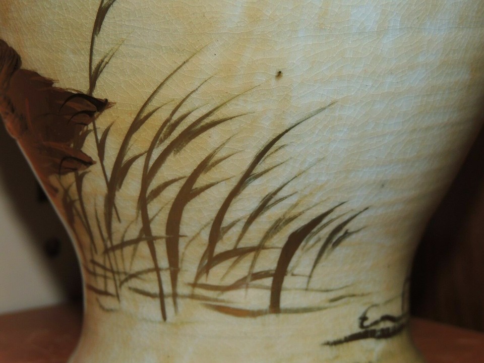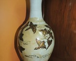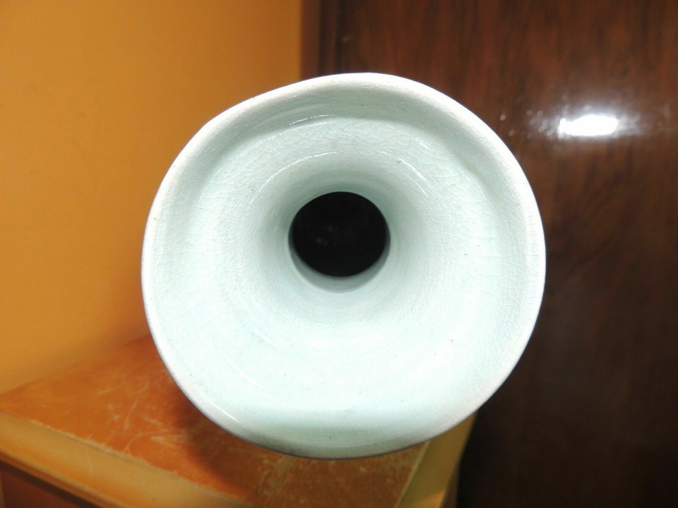 - Vintage Vase 14.5" Green Celadon raised Duck pattern painted gold washed ANTIQUE