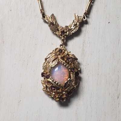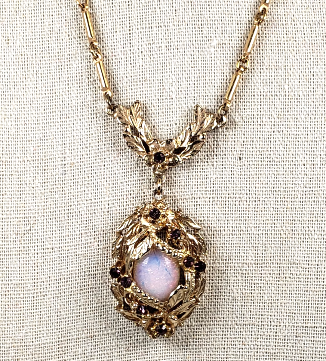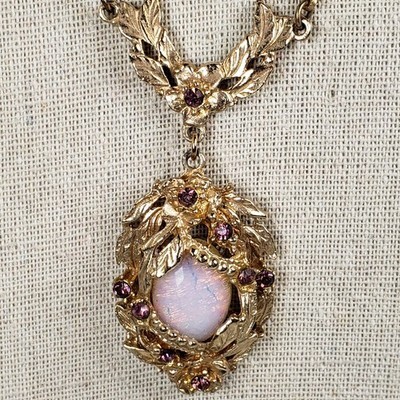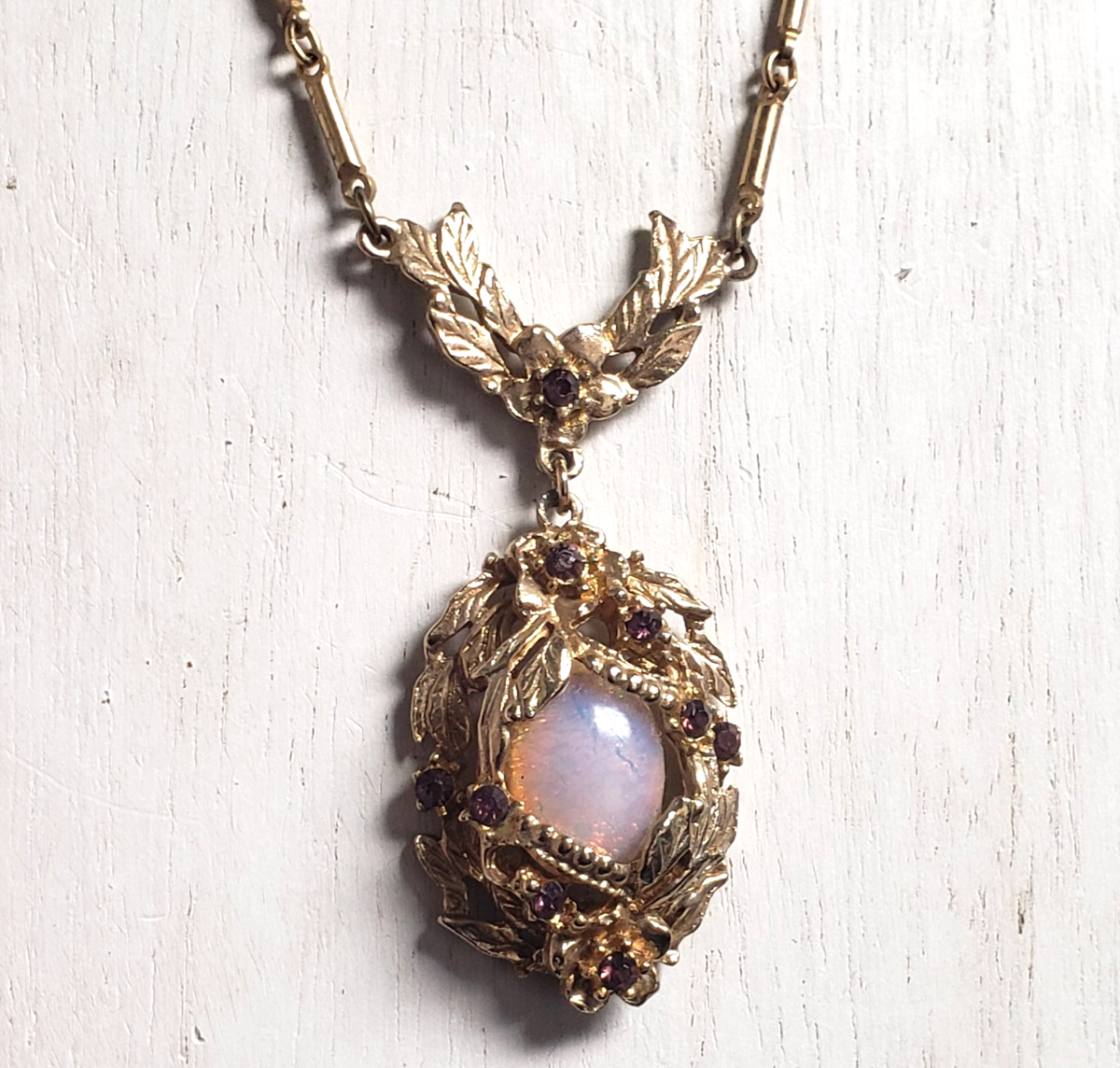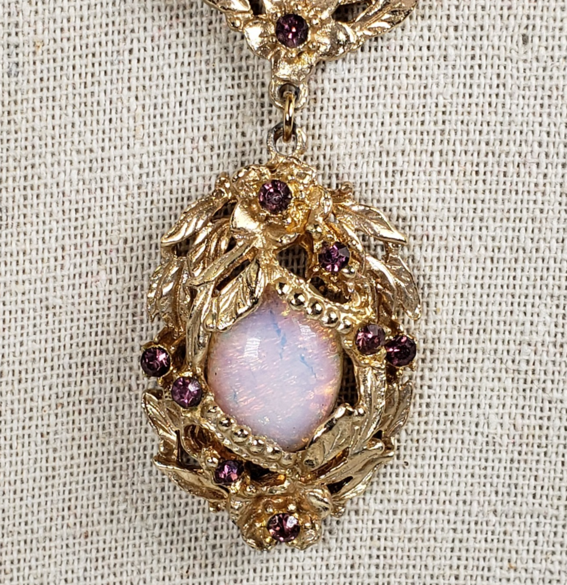 - Vintage Victorian Fire Opal & Purple Rhinestone Goldtone 15" Chocker Necklace