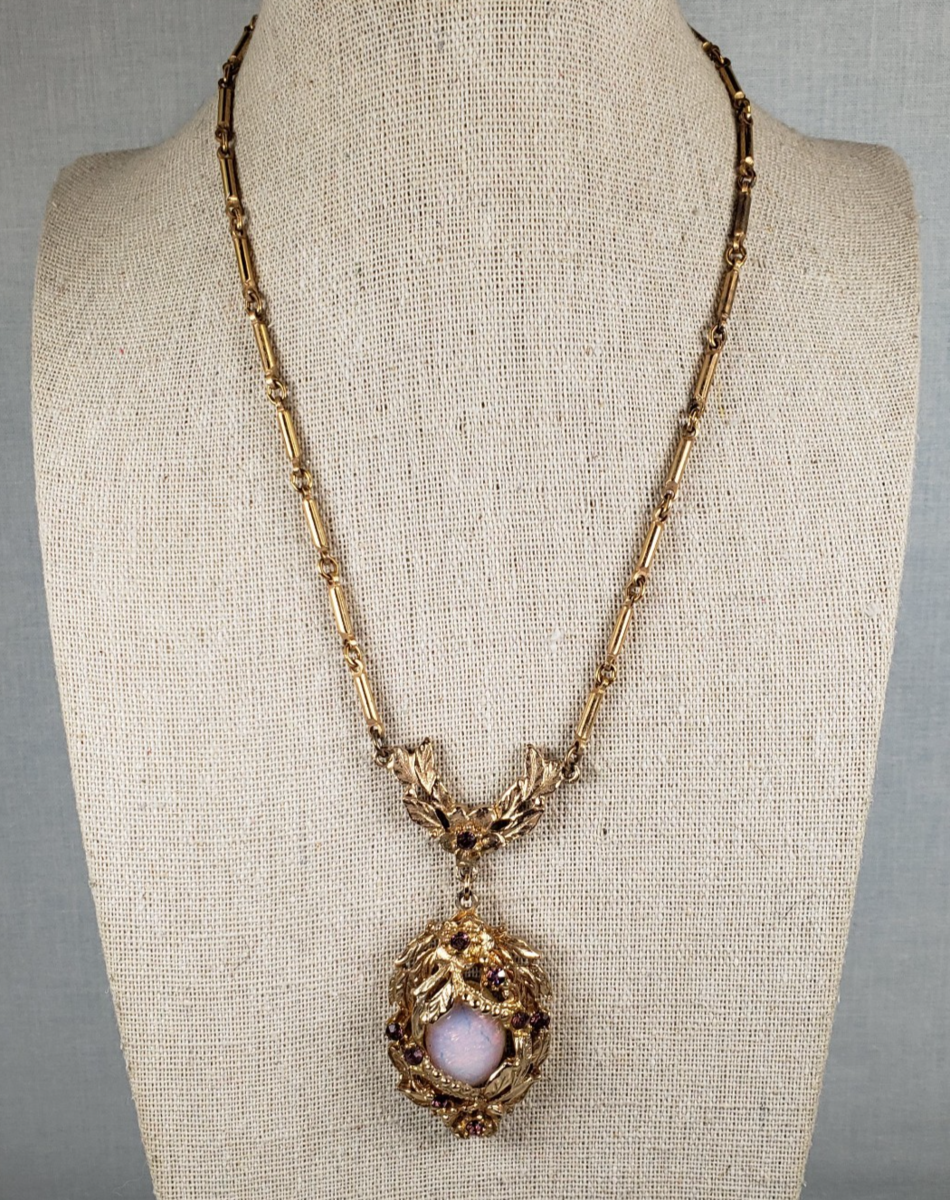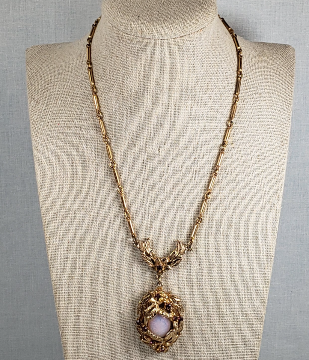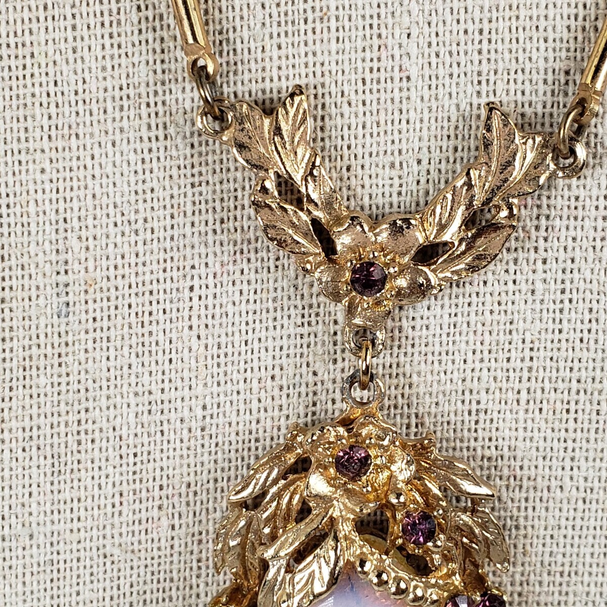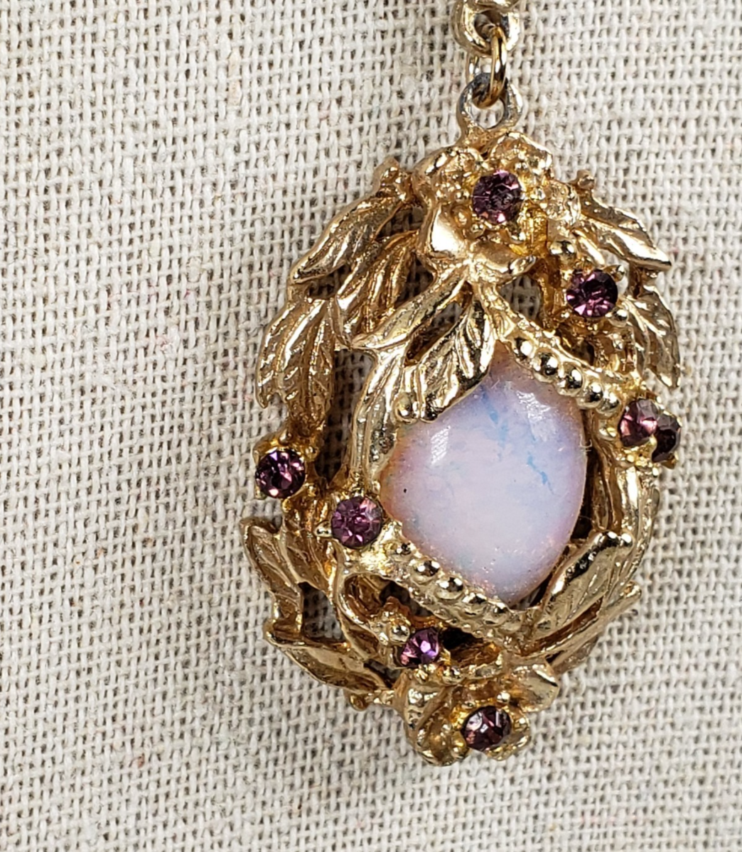 - Vintage Victorian Fire Opal & Purple Rhinestone Goldtone 15" Chocker Necklace
