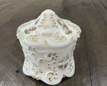 - Vintage Victorian painted Roses & gold Gilding Milk Glass Vanity Powder Jar