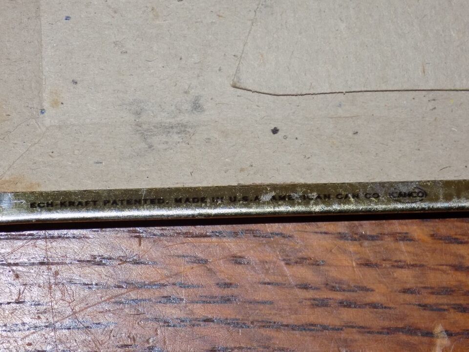 Patented made in USA American Can Co Canco?. Sign measures approx.. 9 OE inches