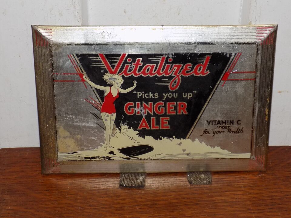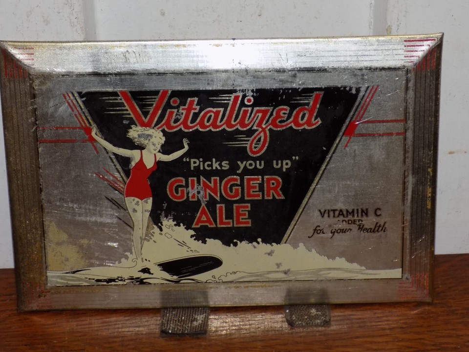 - Vintage Vitalized Picks You Up Ginger Ale Tin Over Cardboard Sign