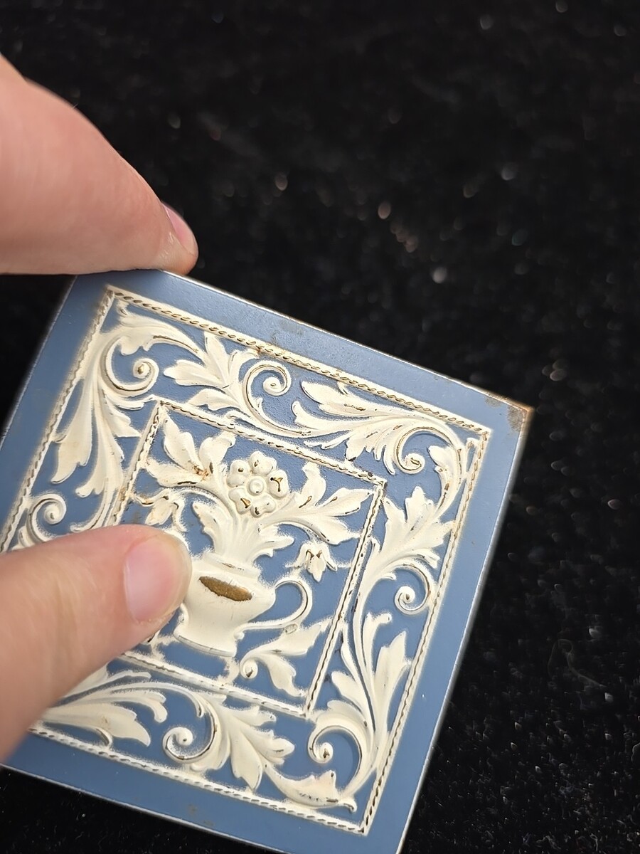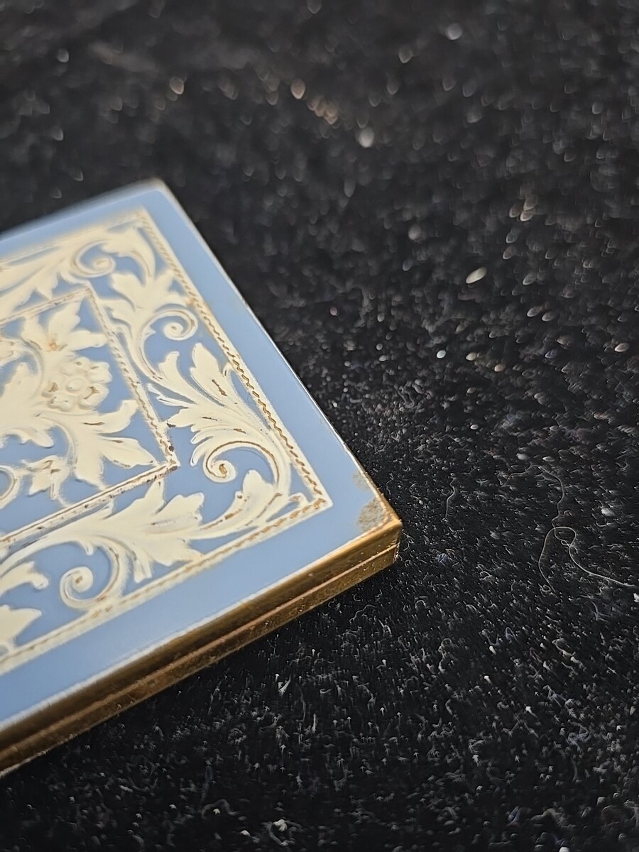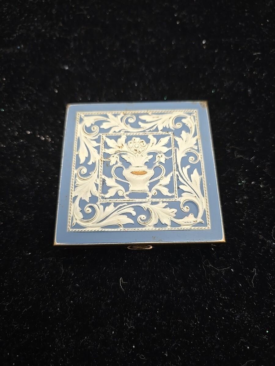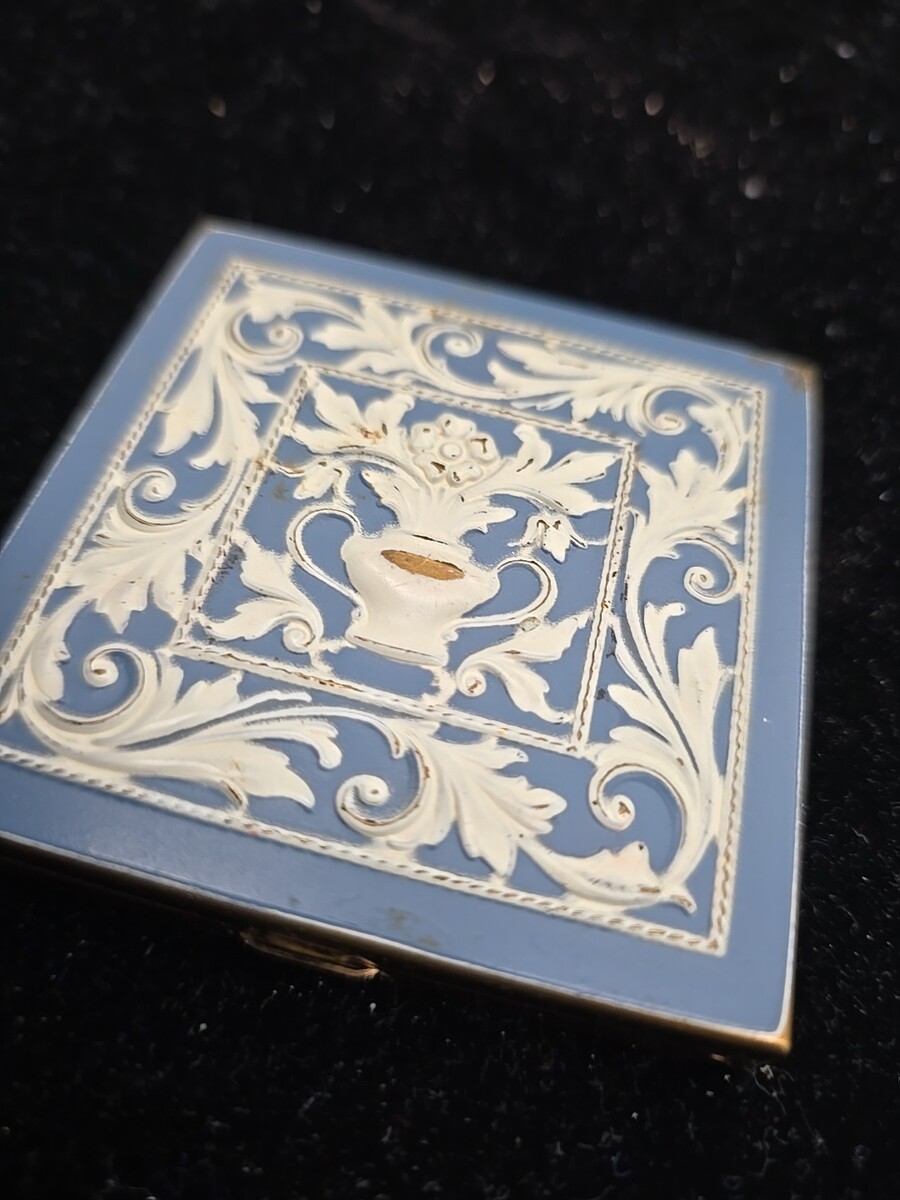 Vintage Volupte Enamel Powder Compact With Mirror 1950's Blue Wedgewood Style