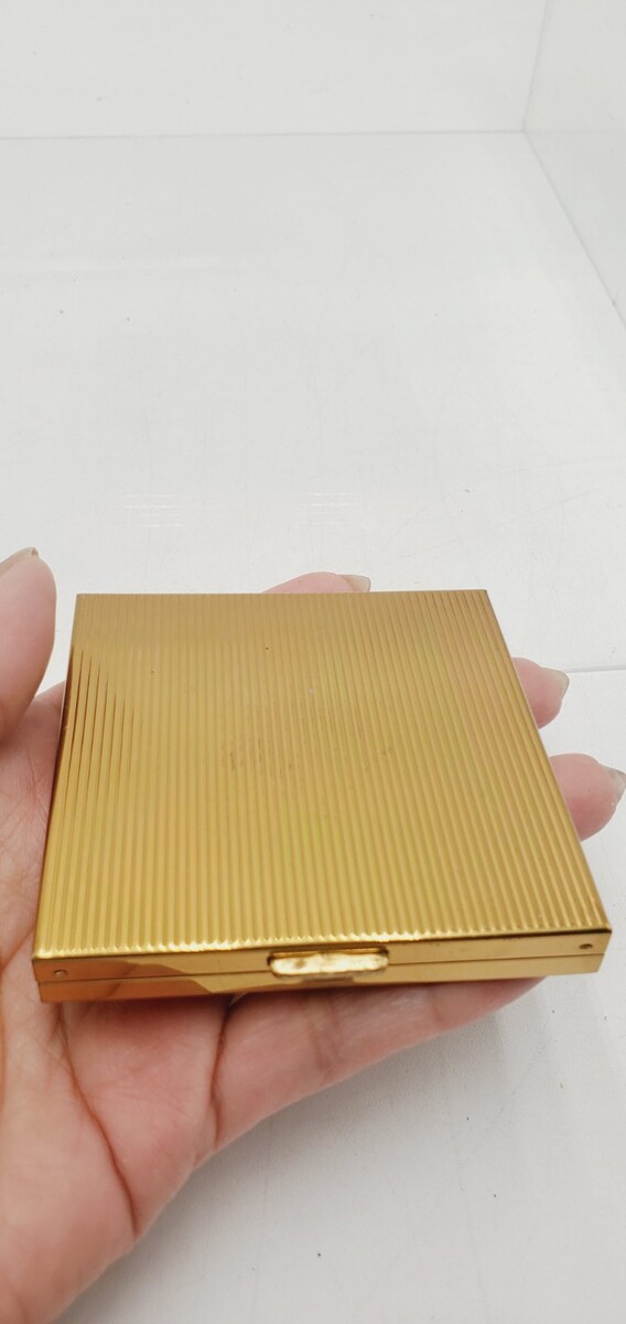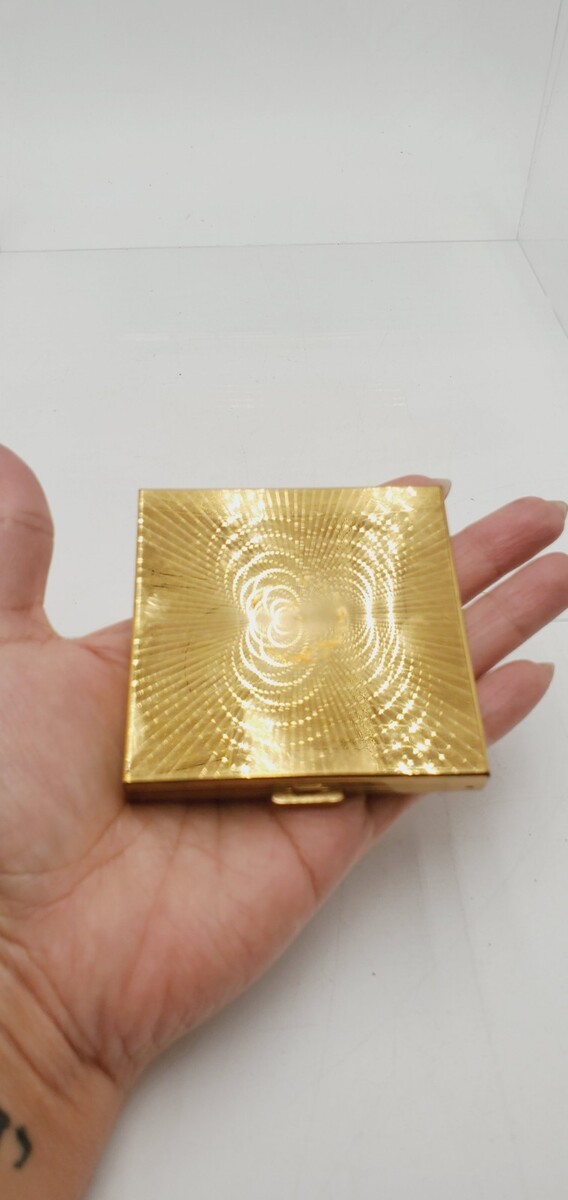 - Vintage Volupte USA Ridged Make Up Compact Gold Tone 3” Push Button w/ Puff