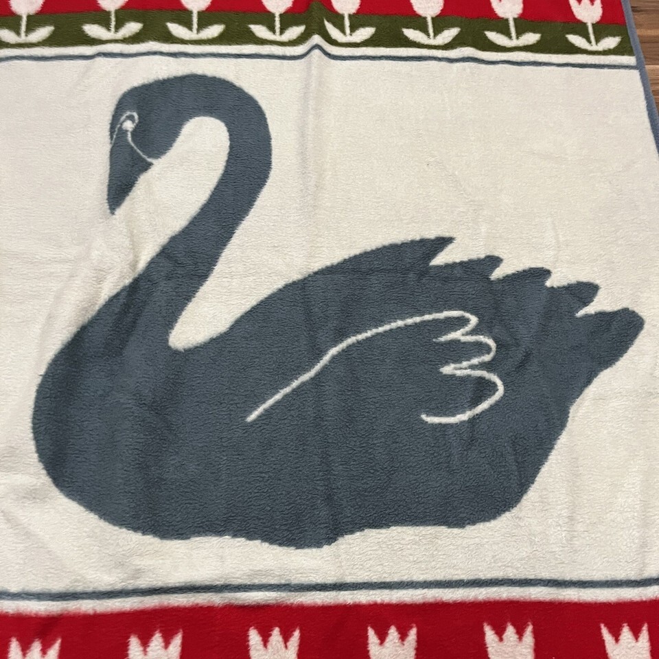 Vintage Vuteks Vukovar Reversible Swan Tulips Throw Blanket Yugoslavia 60x80 ‘86