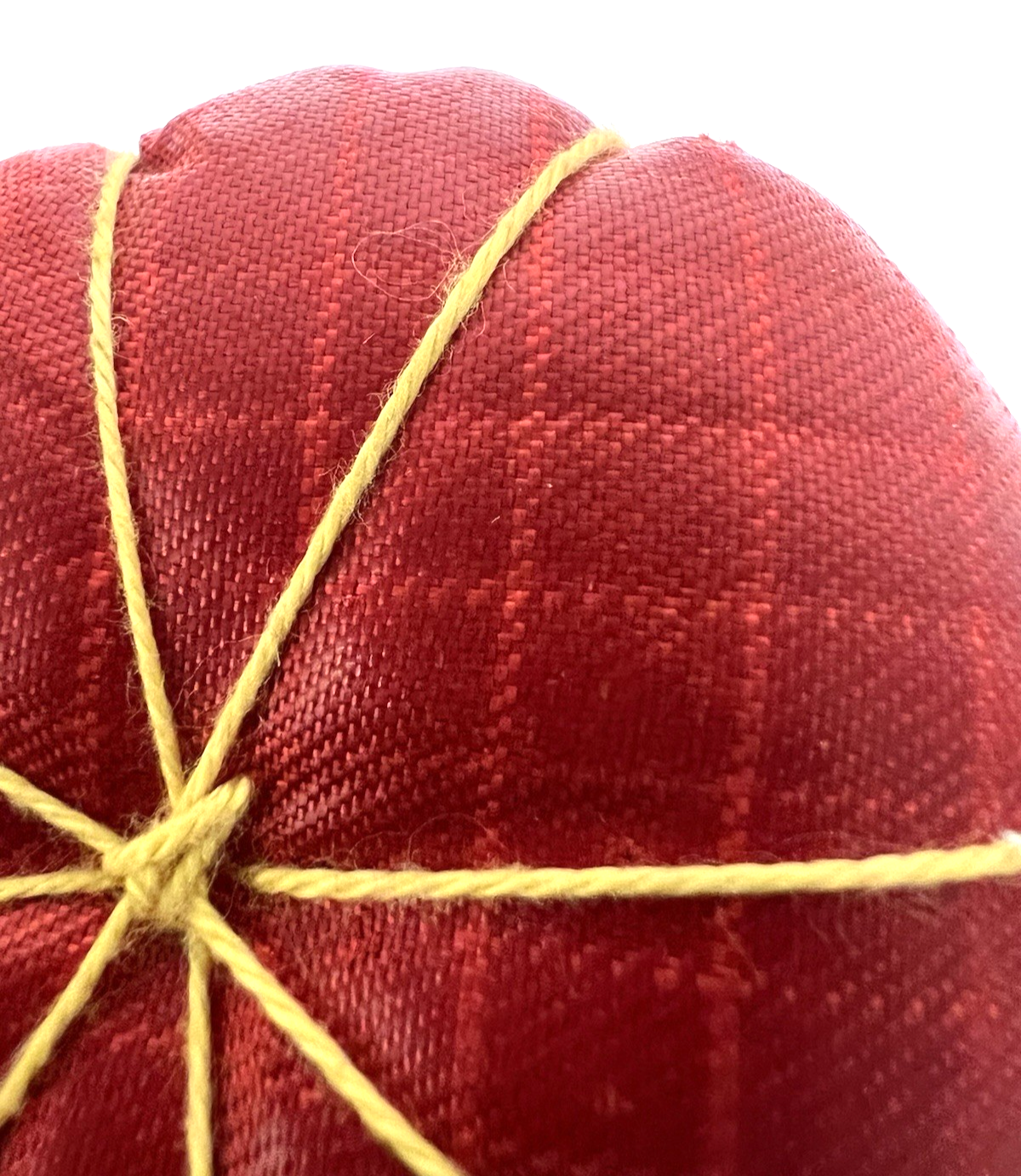 - Vintage Waxed Cotton Tomato Sewing Pincushion Grid Design w Yellow 2 3/4 x 1 In
