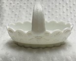 - Vintage Westmoreland Milk Glass Split Handle Basket, Grapes & Vine Pattern 1960s