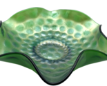 - Vintage Westmoreland Pearly Dots Compote Bowl Green Ruffled Carnival Glass READ