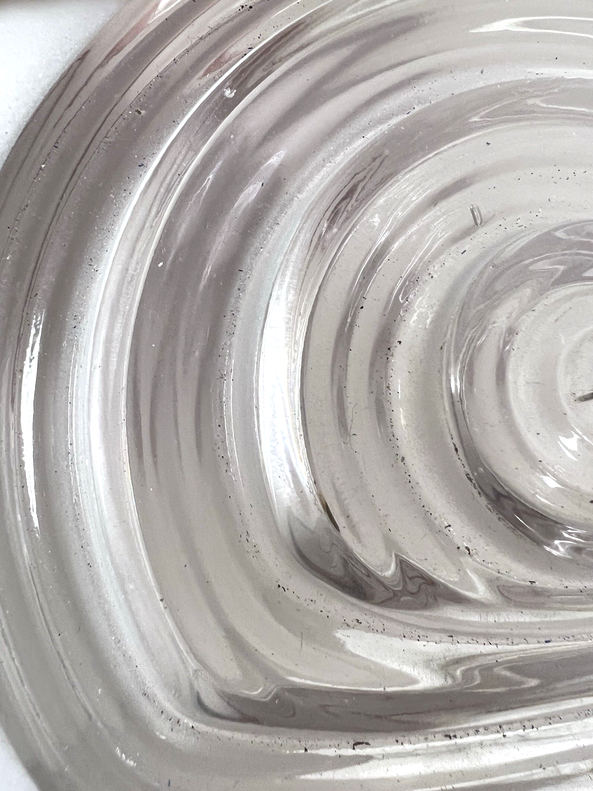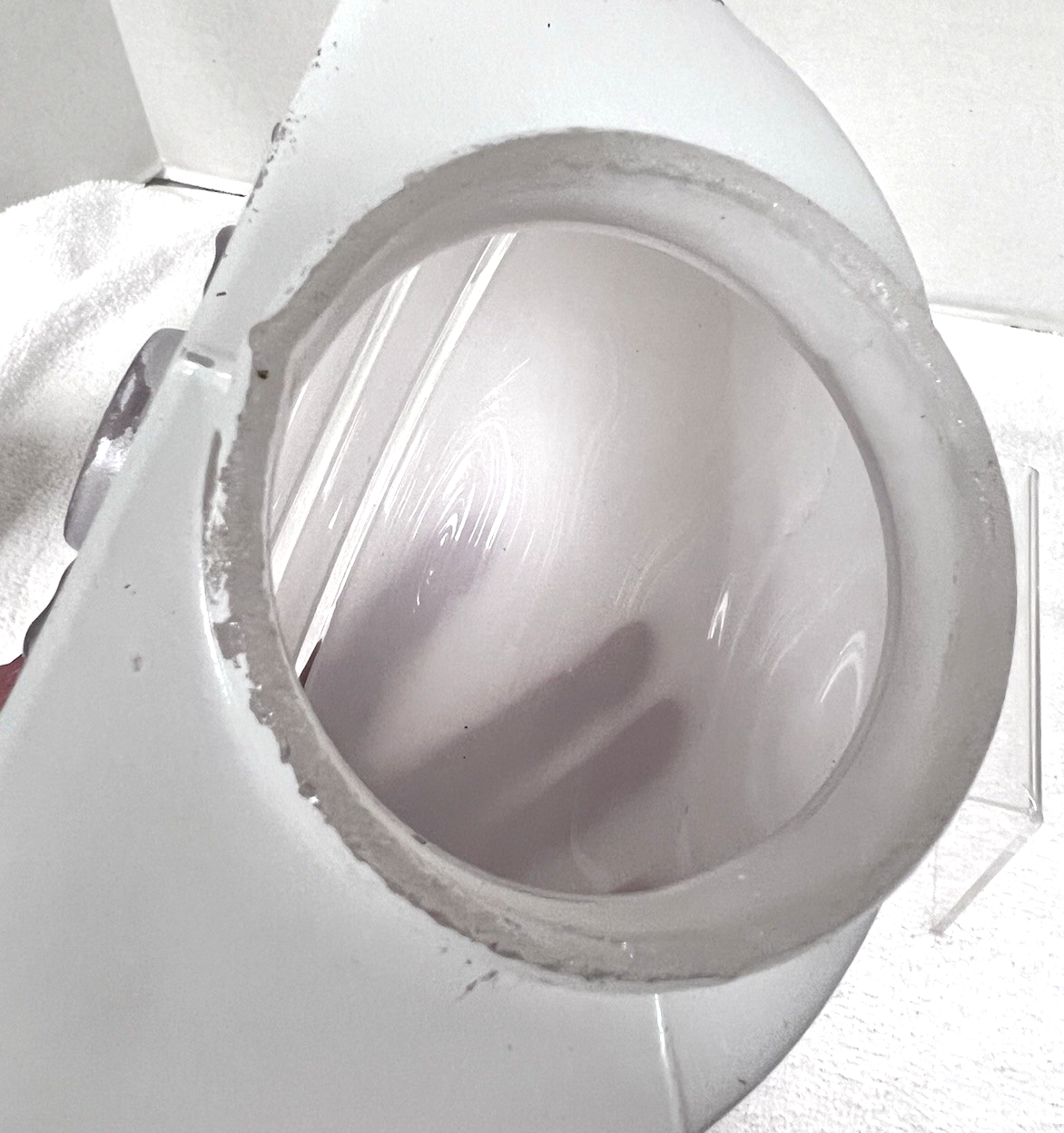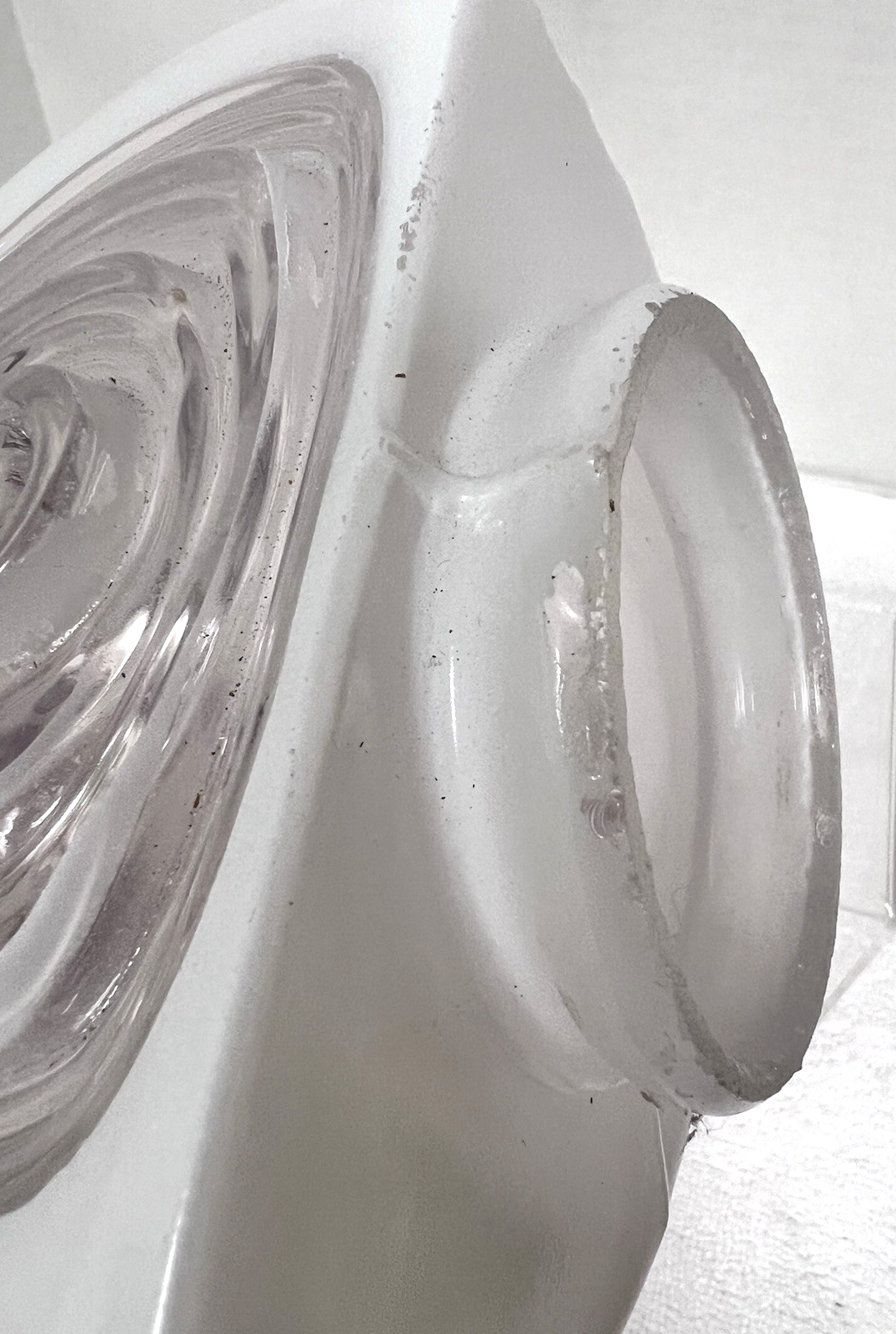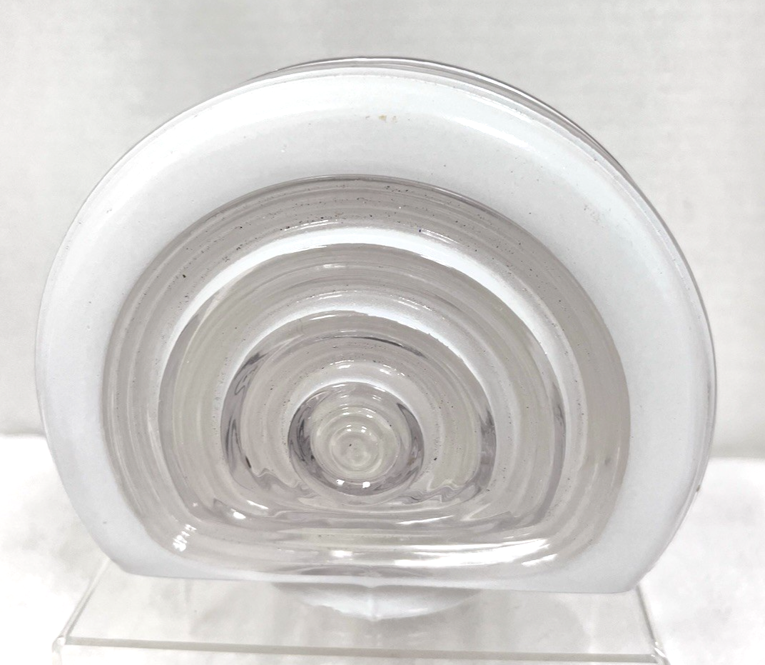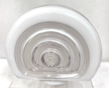 Vintage White Clear Hanging Lamp Shade Round Deco 5 3/4 Long from opening to the round edge the Opening 3 1/8" across and the piece is 6.5 across the deigned center some wear to the white painted rim but that should be covered in the frame that holds it one small paint rub in the straight edge (see photos) we will take care in the shipping