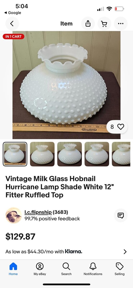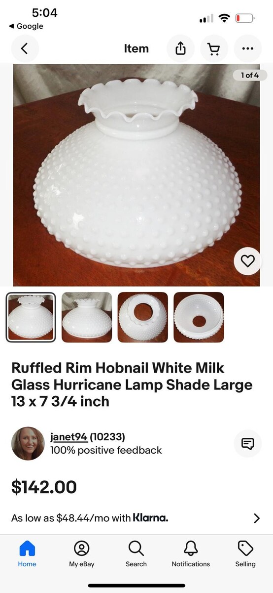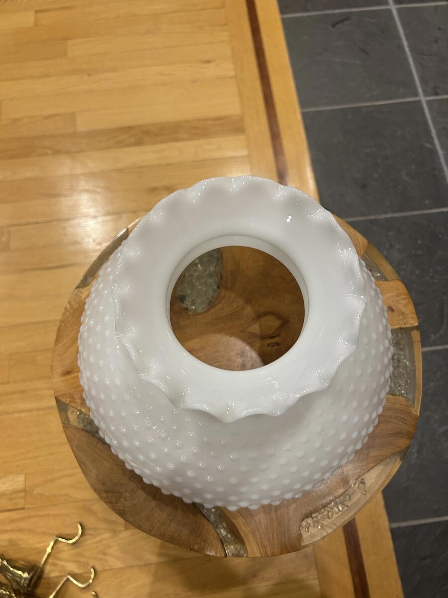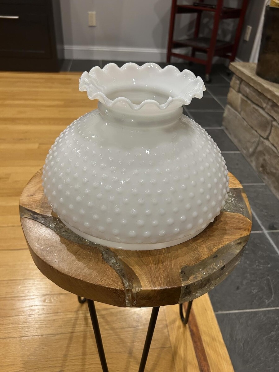 - Vintage White Milk Glass Hobnail Lamp Shade