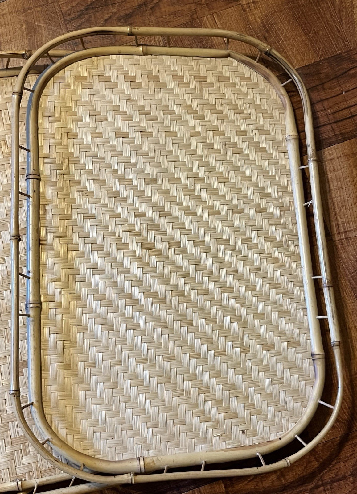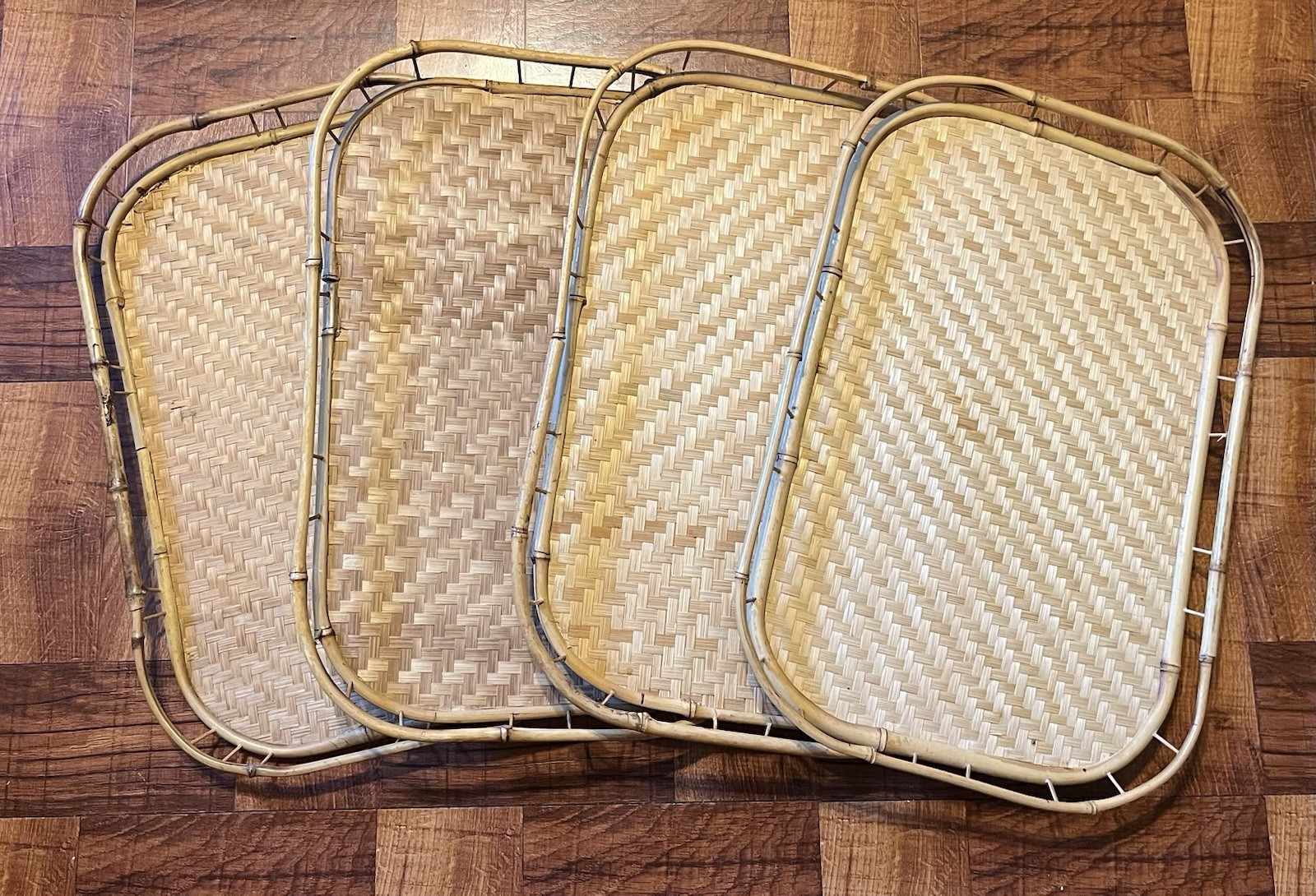 - Vintage Wicker Rattan Bamboo Serving Trays Tiki Lap Midcentury Modern LOT Of 4