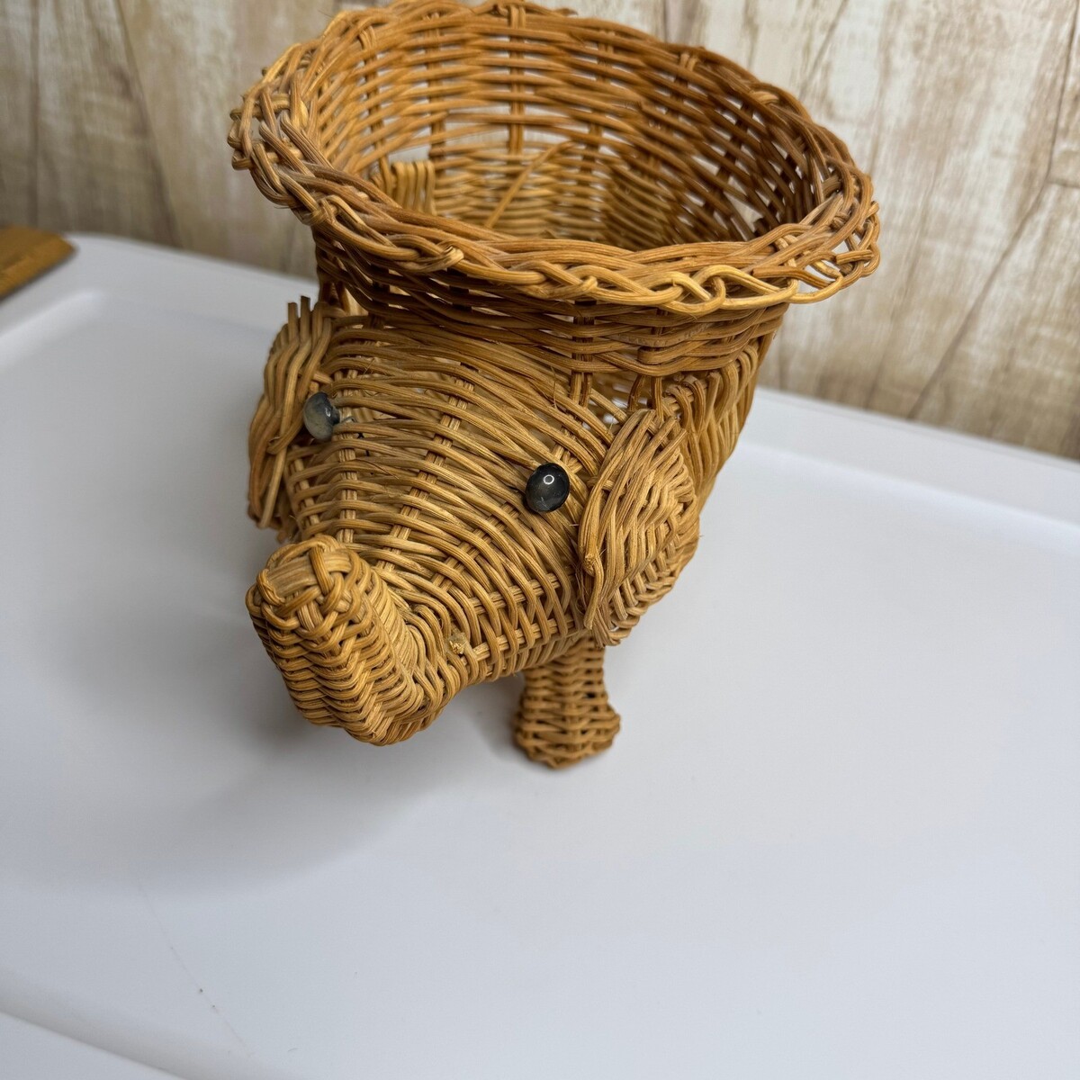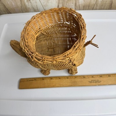 - Vintage Wicker Rattan Elephant Basket Holder Trinket Dish
