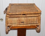 Vintage Wicker Rattan Leather Folding Beach Canoe Boat Chair with Storage