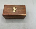 - Vintage Wood Hinged Trinket Box w Brass Anchor Inlay 6.75" x 2.75" Brass Telesco