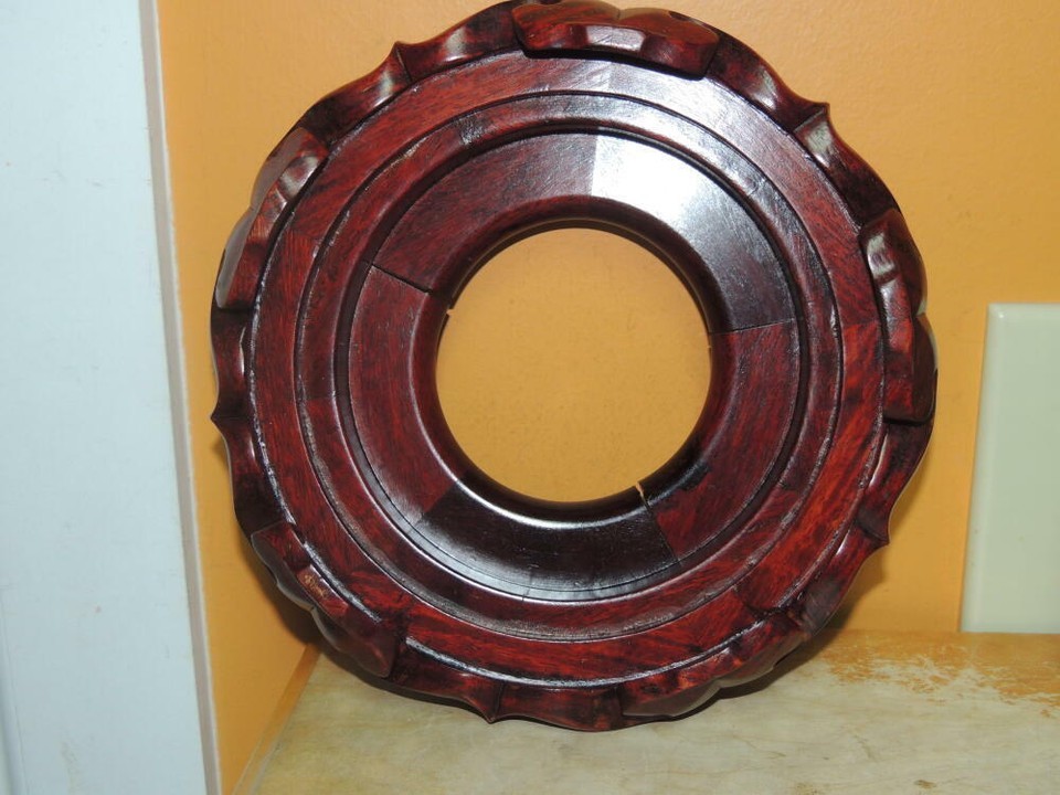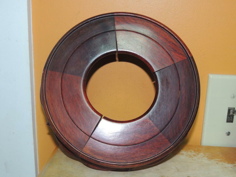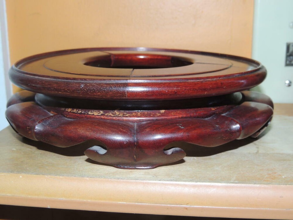 - Vintage Wood Wooden 7.25" 8.25" Base Carved Chinese Stand Lamp Vase Pot HARDWOOD