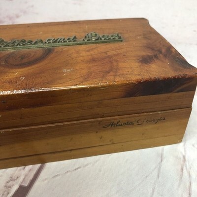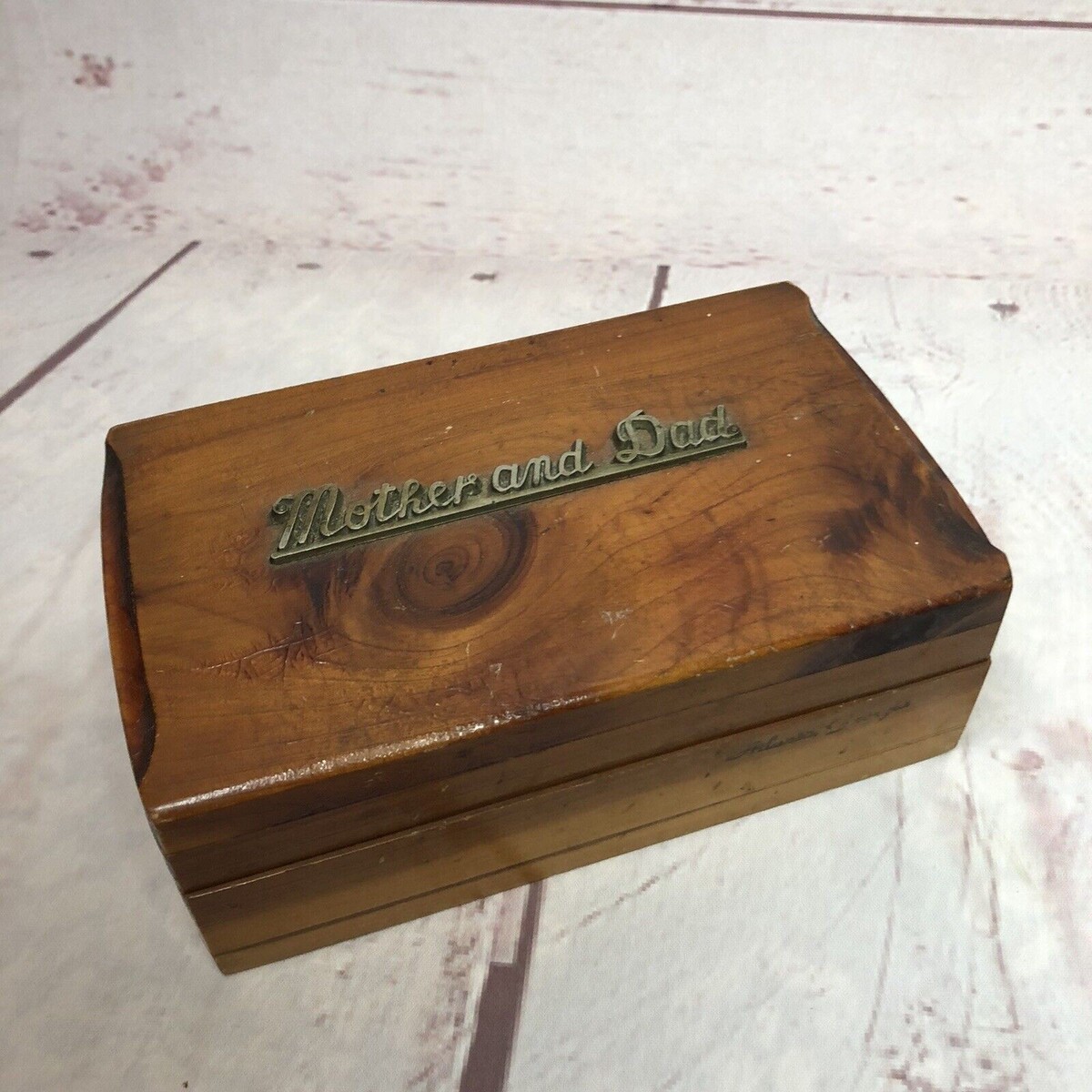 - Vintage Wooden Box Trinket Jewlery Mother and Dad Wood Atlanta Georgia