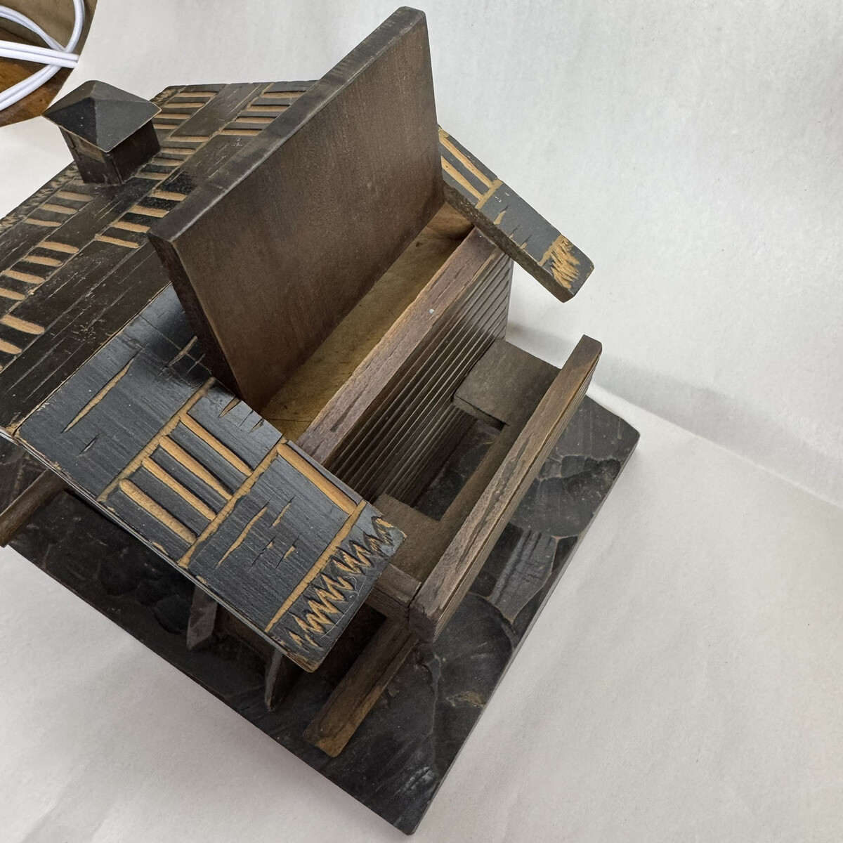 Vintage Wooden Cigarette Dispenser Handmade Asian House / Mill on Platform