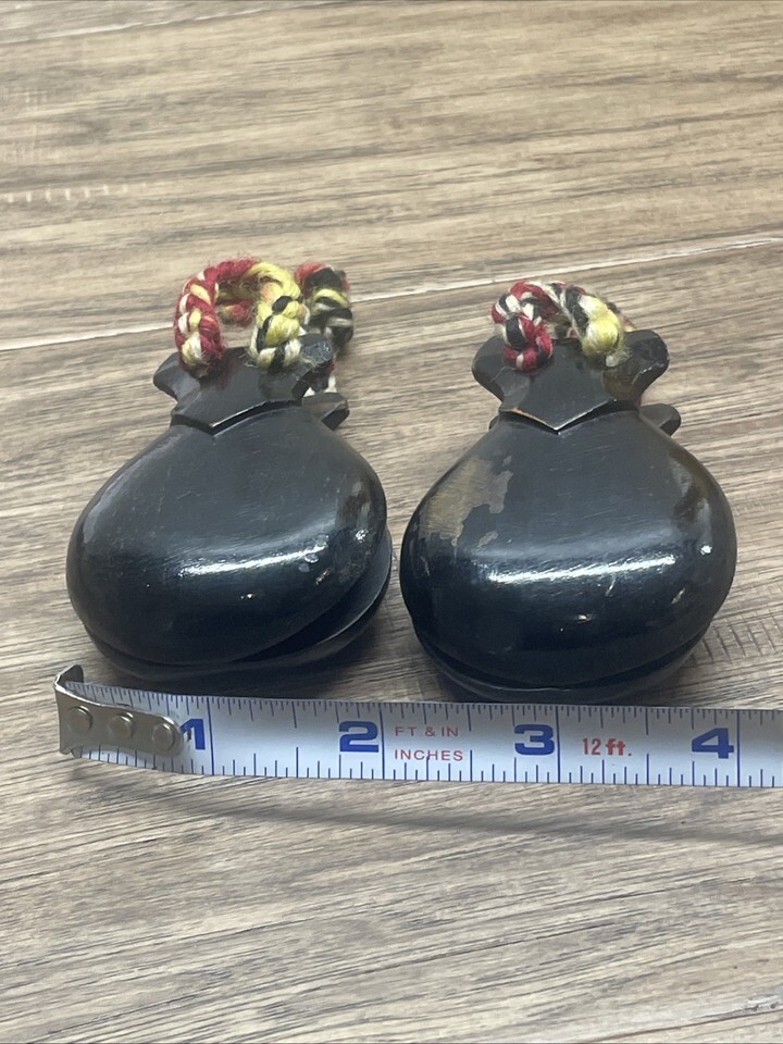 Vintage Wooden Hand Carved Castanets Musical Instrument KG