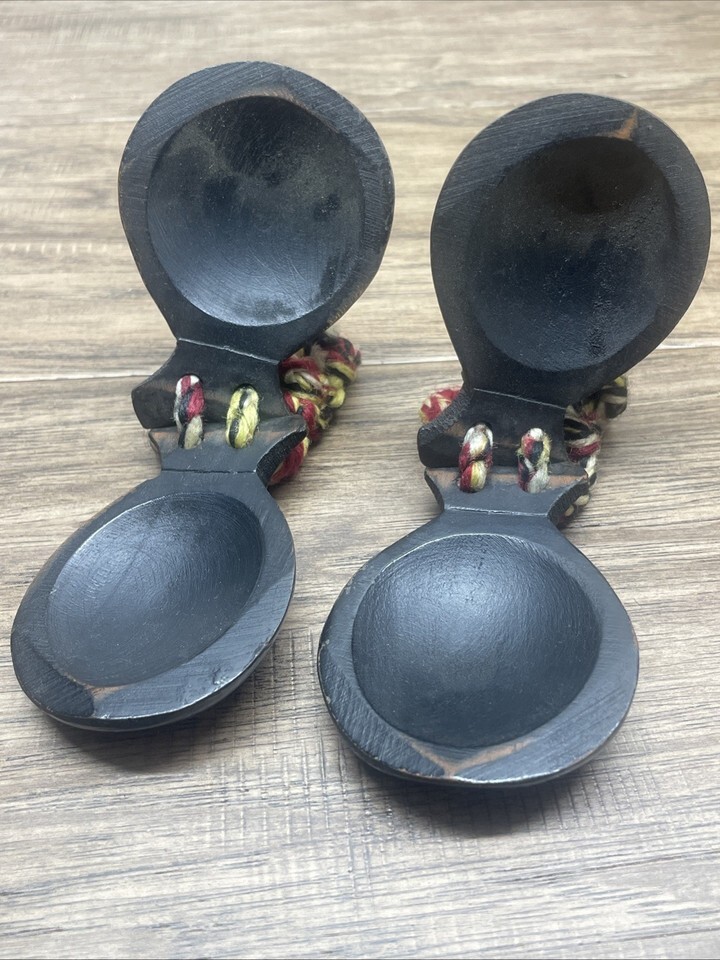 - Vintage Wooden Hand Carved Castanets Musical Instrument KG