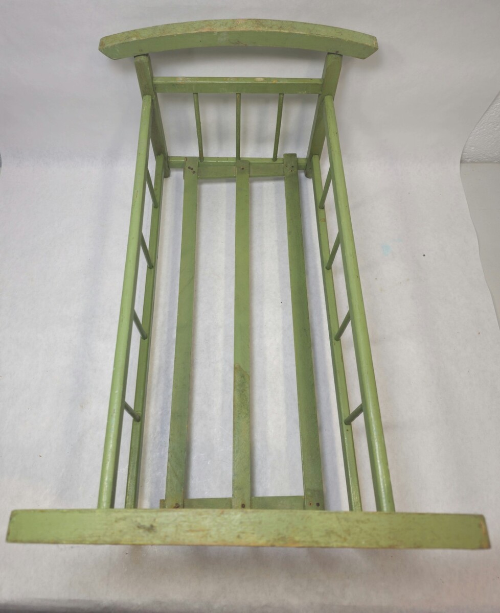 - Vintage Wooden Rocking Doll Cradle Crib Bed Seafoam Green Paint W/pillow