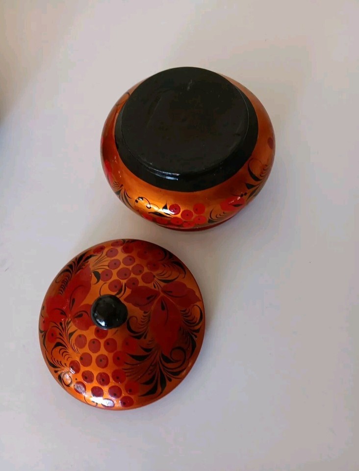 - Vintage Wooden Trinket Bowl With Lid Beautifully Detailed Hand painted Folk Art