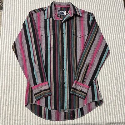 Vintage Wrangler Western Shirt Cow-boy Cut X-long Tails Cowboy Cut 15-33