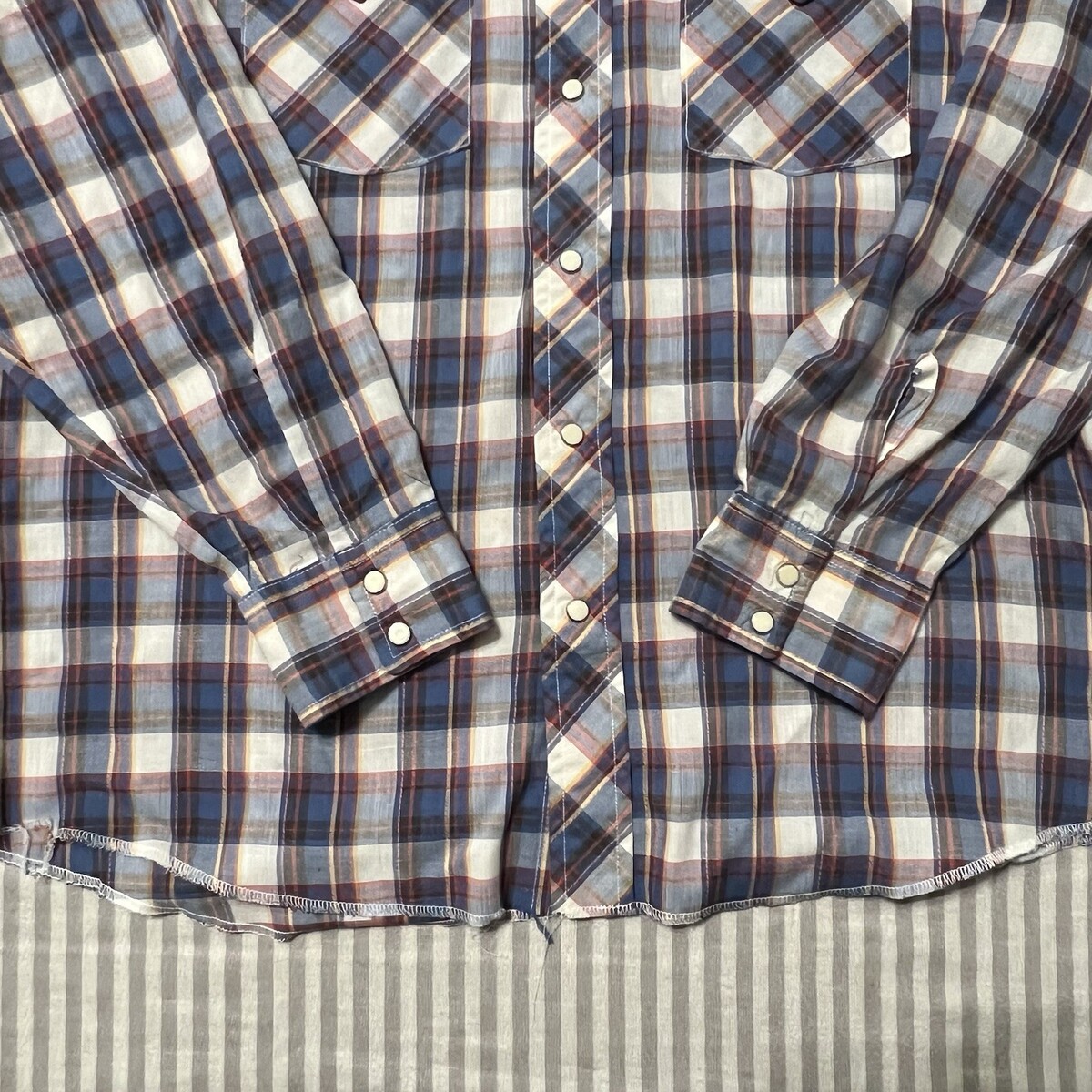- Vintage Wrangler Western Shirt Plaid Pearl Snap Shirt 48” Chest Made In USA