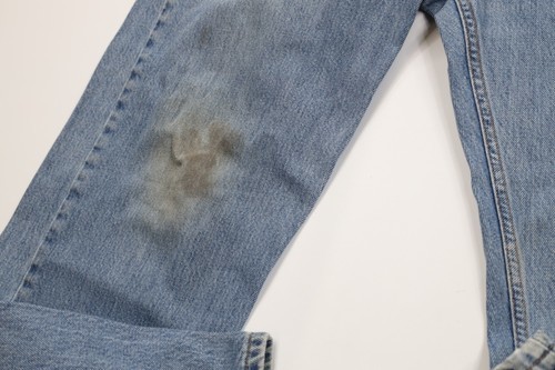 Rips on cuff and pockets. Blemishes front and back. Disoclored and faded. USA made
