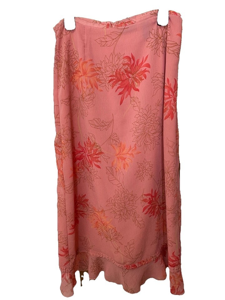 Elegant and lightweight, this orange floral midi skirt features a delicate ruffle hem. Perfect for warm-weather outings or casual gatherings.