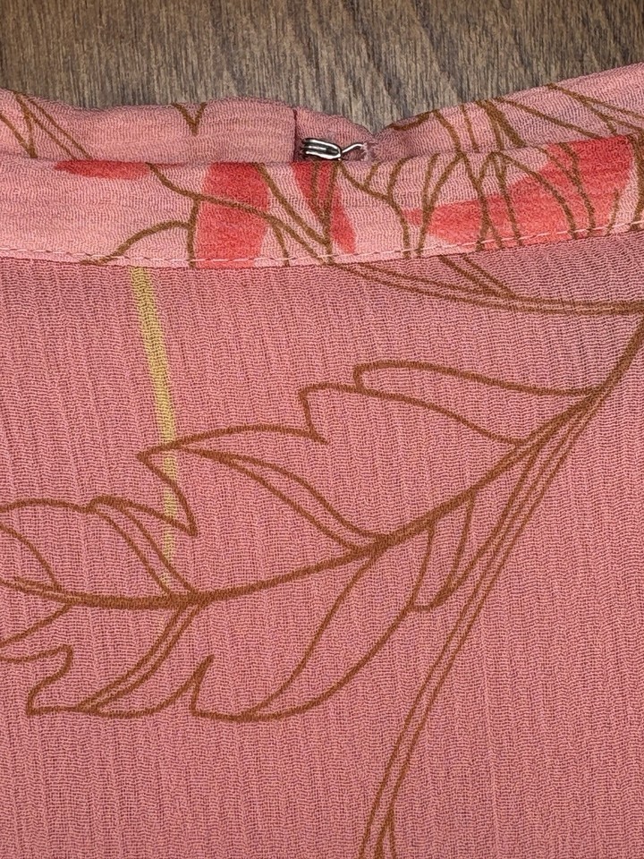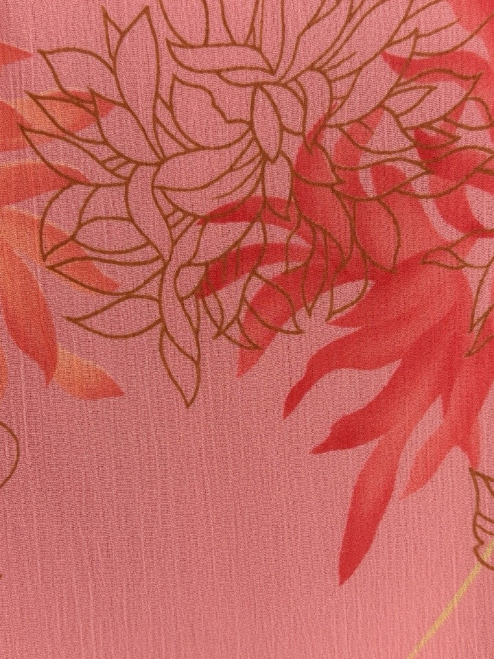 ? Peach-Orange leaf print (This is an orange-pink hue. More in orange family.)