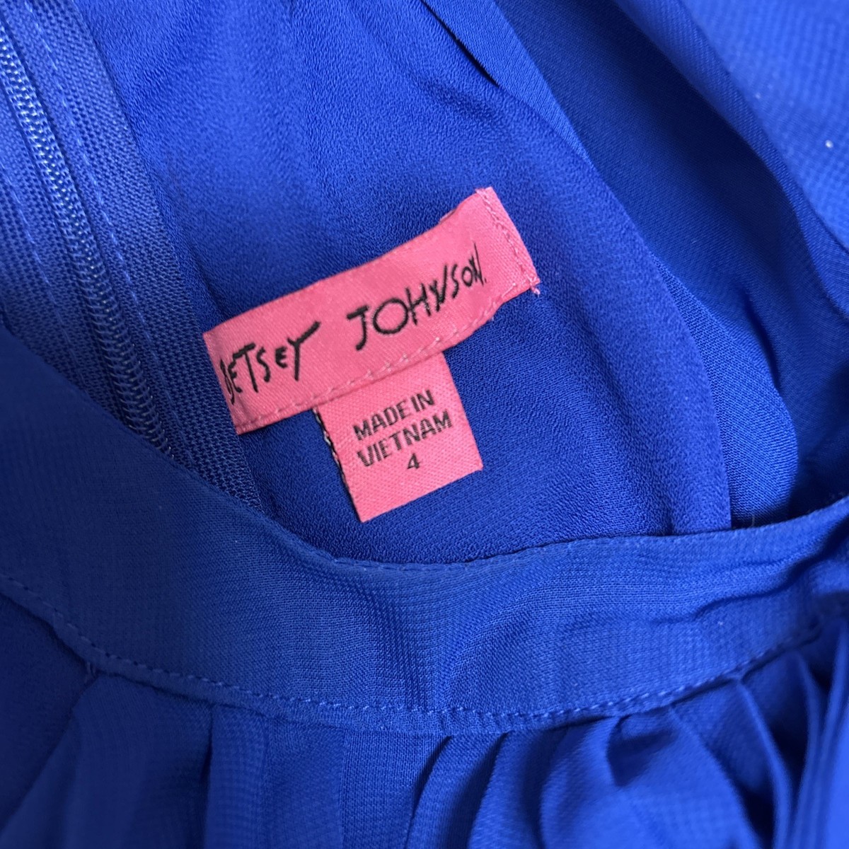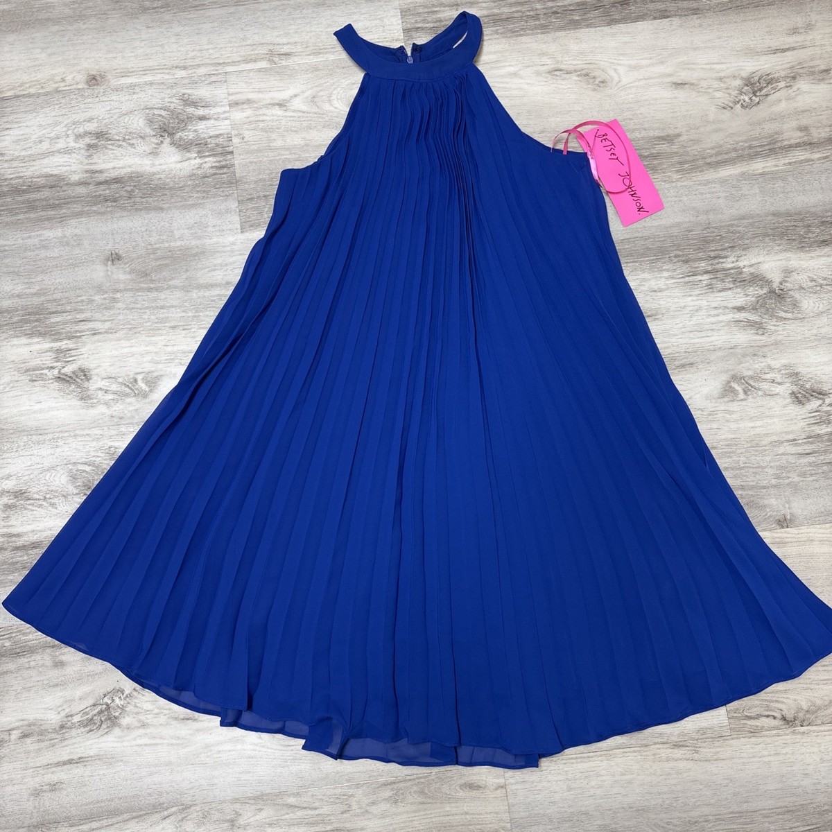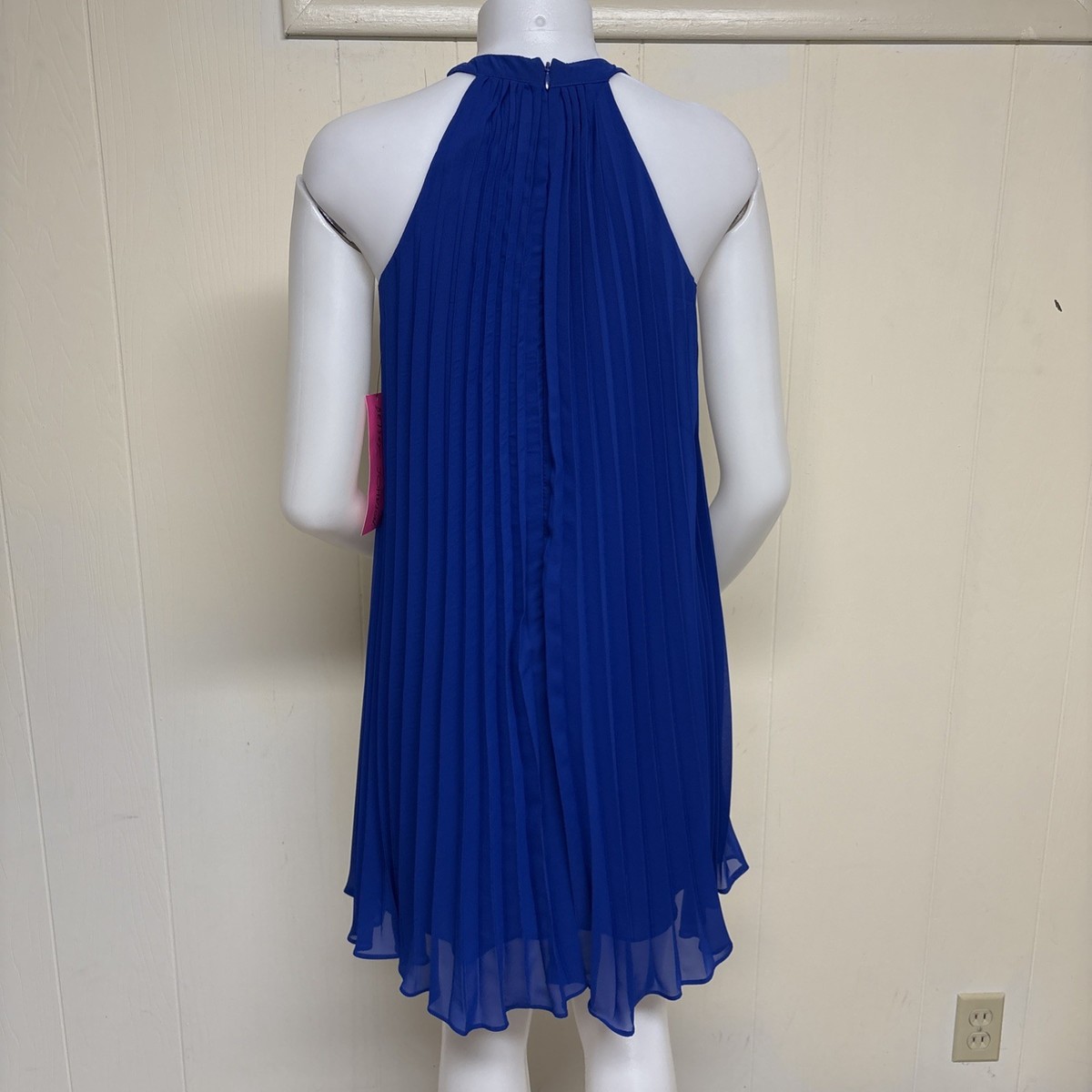- Vintage Y2K Betsey Johnson Halter Dress Womens 4 Royal Blue Pleated Mini Aline