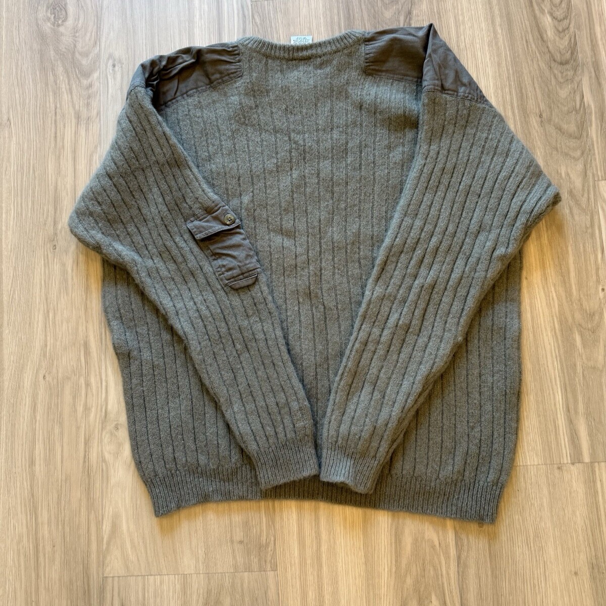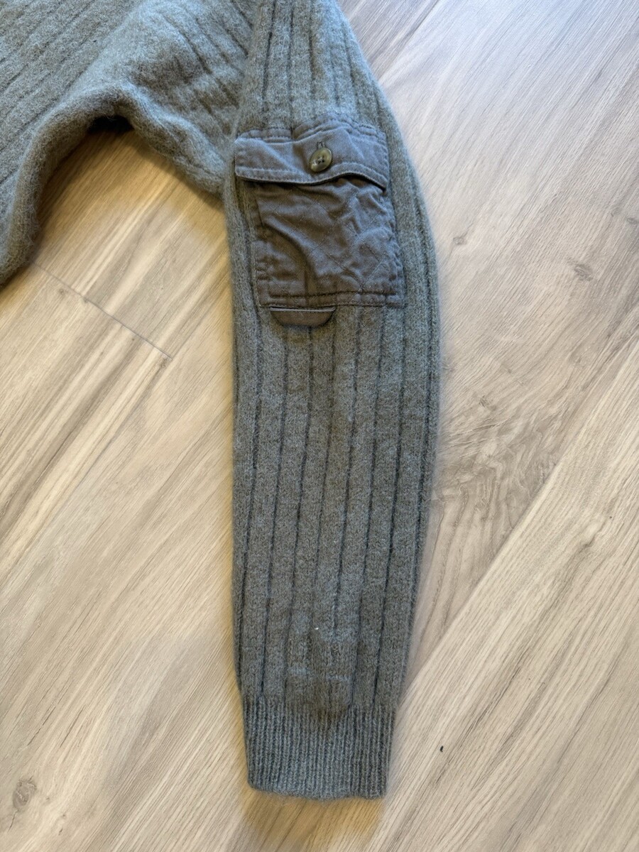 Item is in good condition - no stains or holes. Please do note this is a vintage wool sweater so it does have some signs of wear/age. The last photo shows the sleeve by the cuff where a logo used to be. It is circled in yellow.