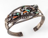 - Vintage Zuni Rainbow Dancer Sterling Silver Inlay Cuff Bracelet 32.3 gr