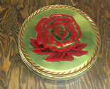 - Vintage empty Shirley Jean fruit cake container round with red rose flower lid